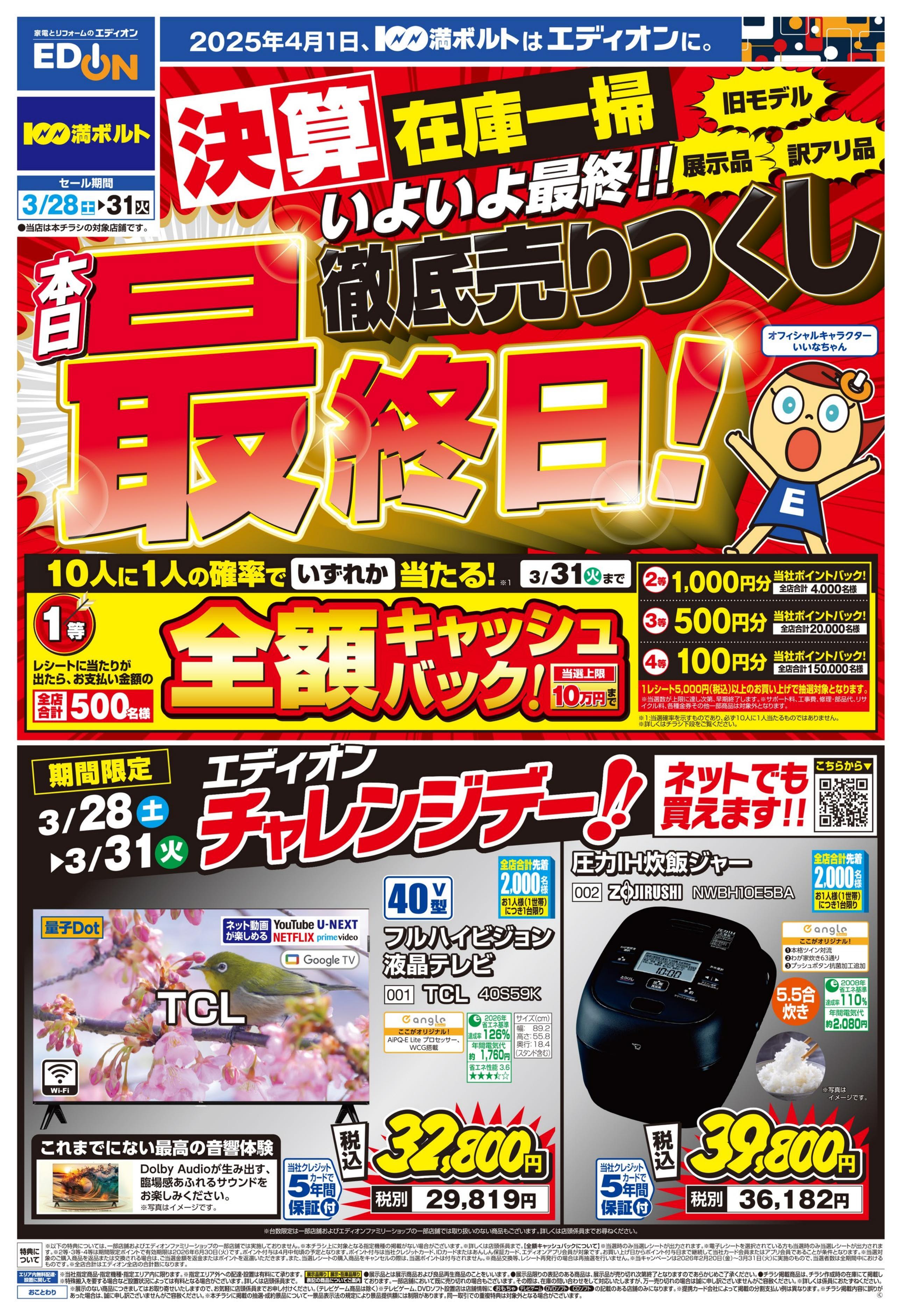 営業時間 営業時間はエディオンの店舗情報ページにて最新情報をご確...