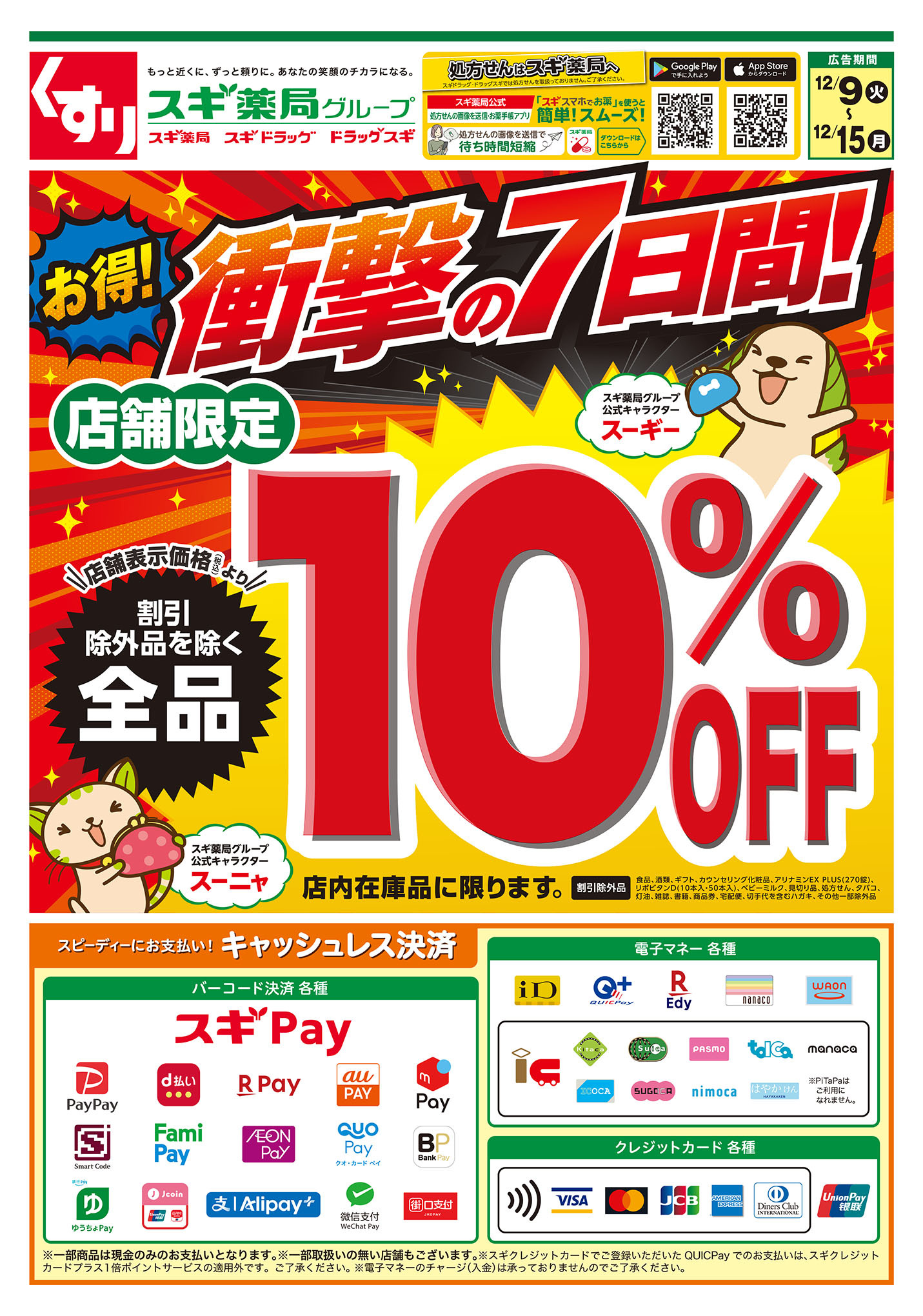 PayPay / QuicPay / Suica / PASMO / 楽天Edy / iD / 楽天ペイ / auPAY / メルペイ / d払い / 自社APP