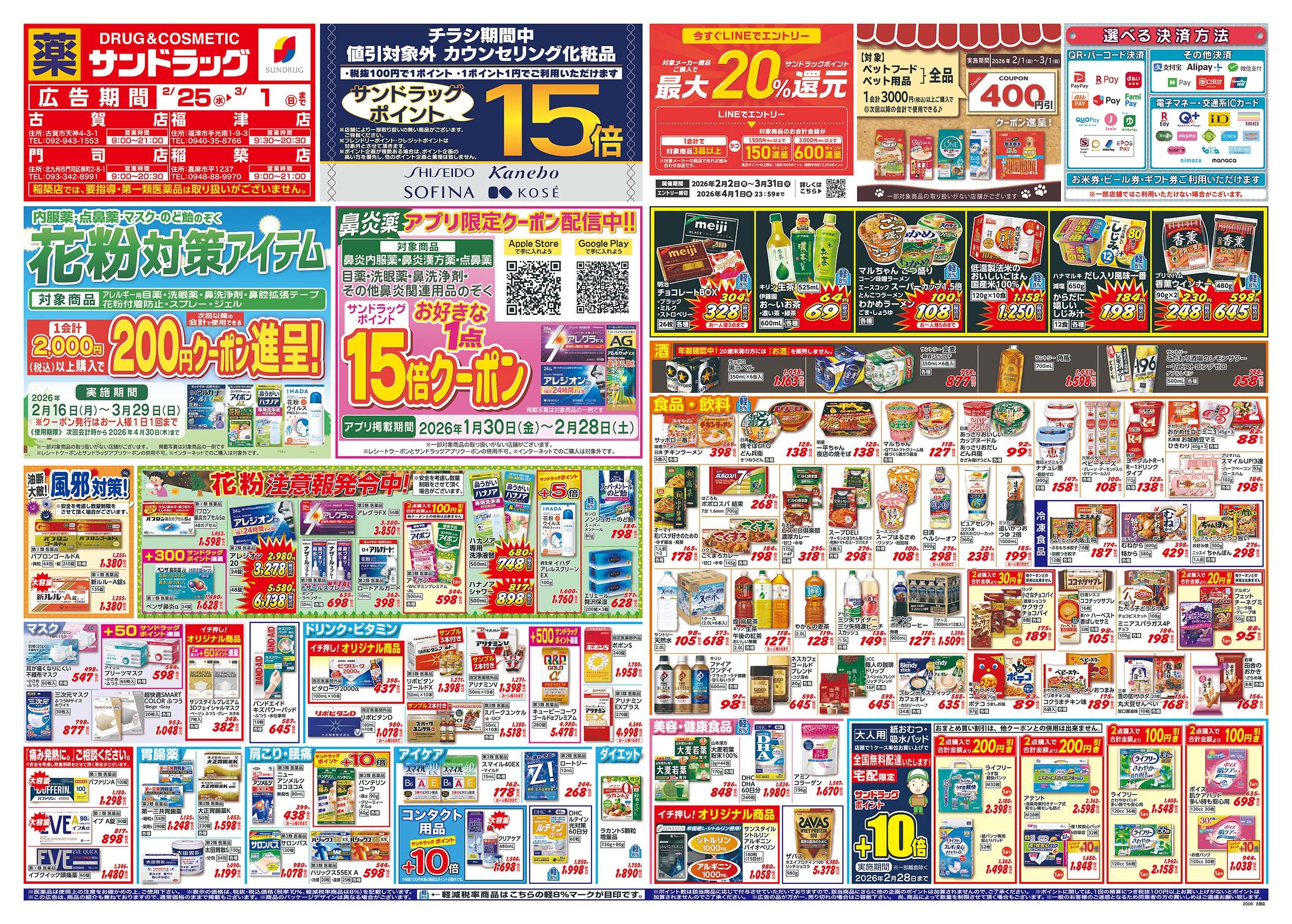 iD、nanaco、楽天Edy、QUICPay+、WeChat Pay、ALIPAY、PayPay、auPAY、クオ・カードペイ、メルペイ、NAVER Pay