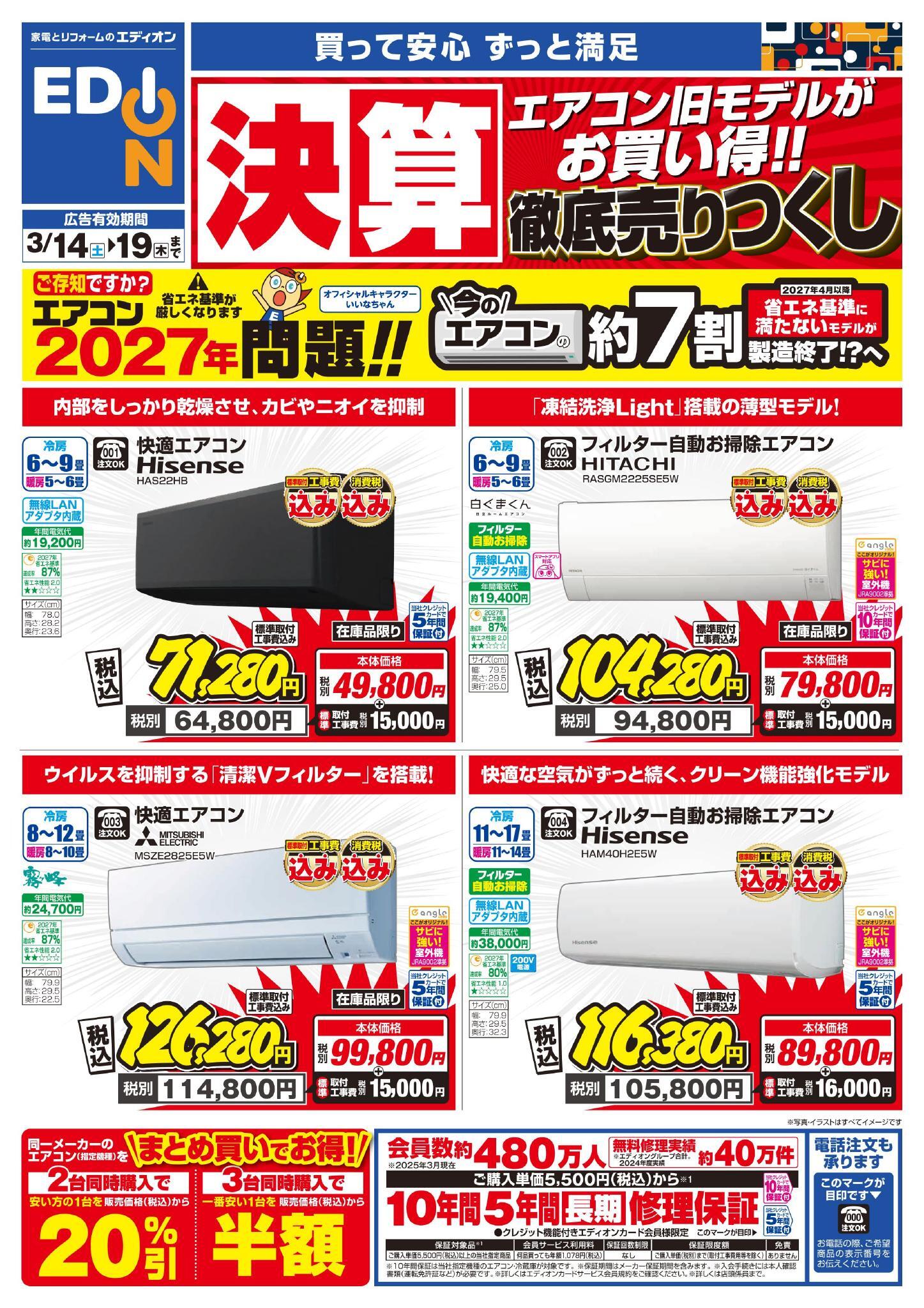 営業時間 営業時間はエディオンの店舗情報ページにて最新情報をご確...