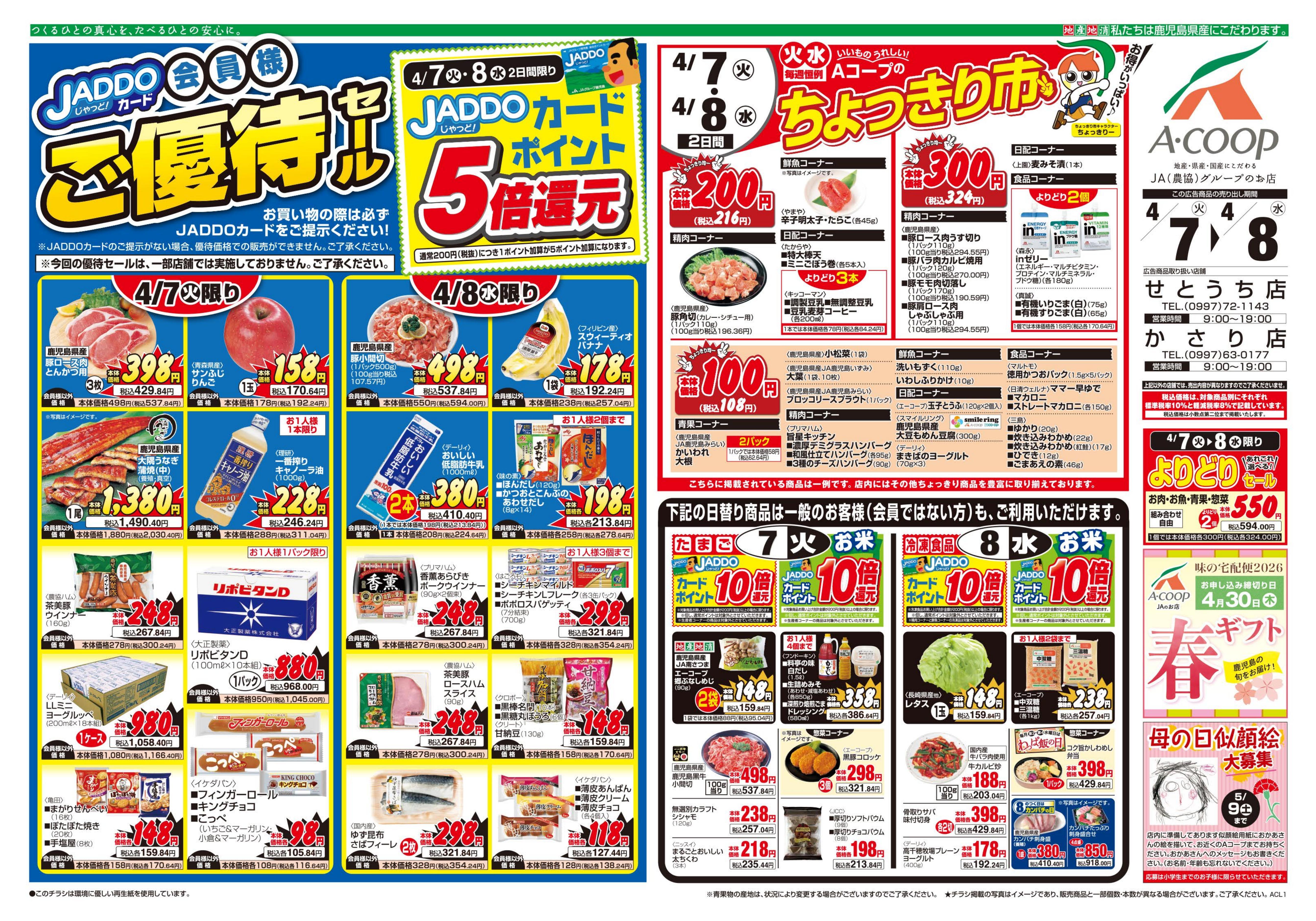 有(JADDOカード):お買上げ金額216円(税込)に応じてポイントを加算致します。