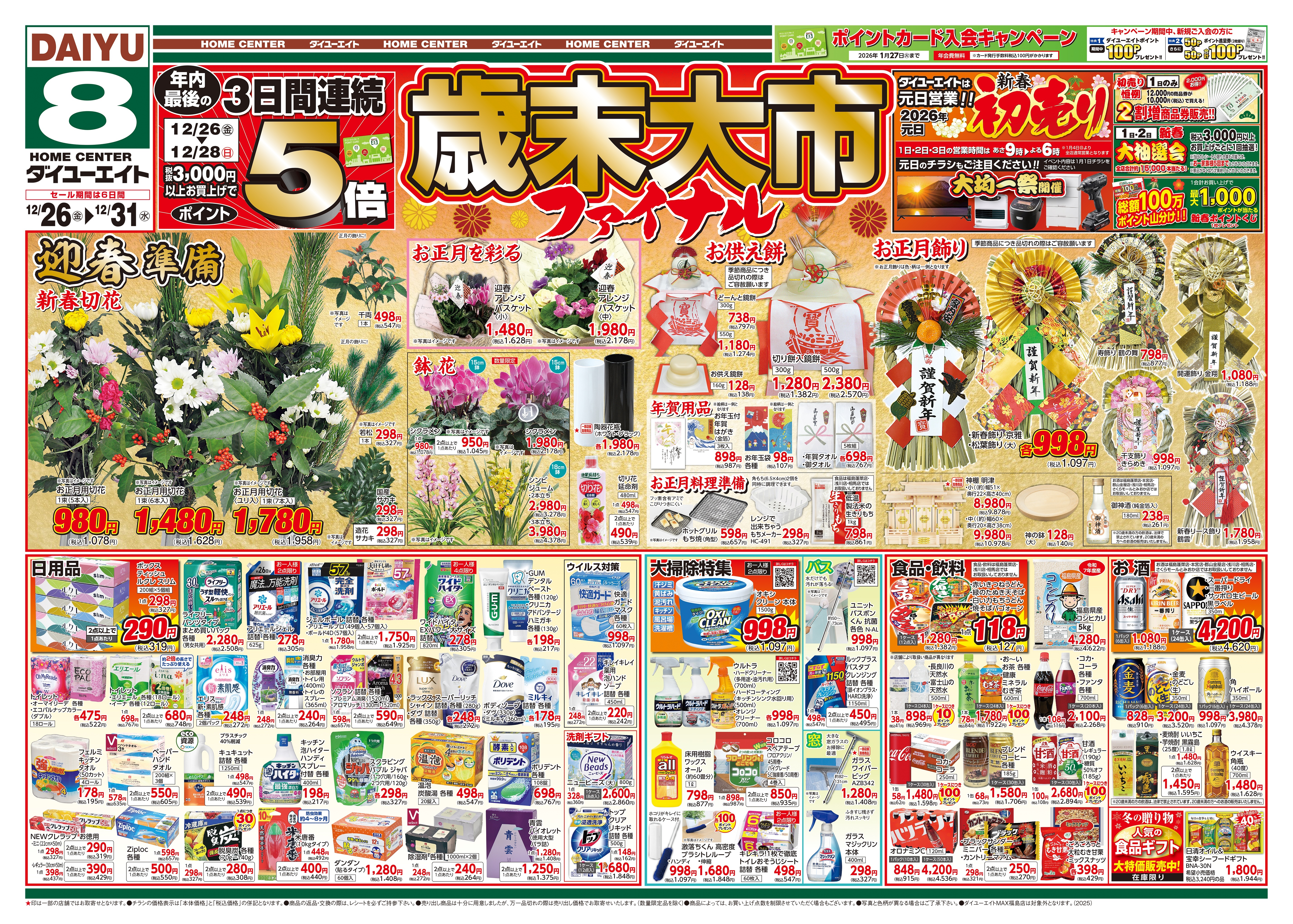 お買い上げ税抜100円につき1ポイント進呈。500ポイントでダイユーエイトポイント券を1枚進呈します。ポイント券3枚で1,000円分のお買い物券としてご利用になれます。