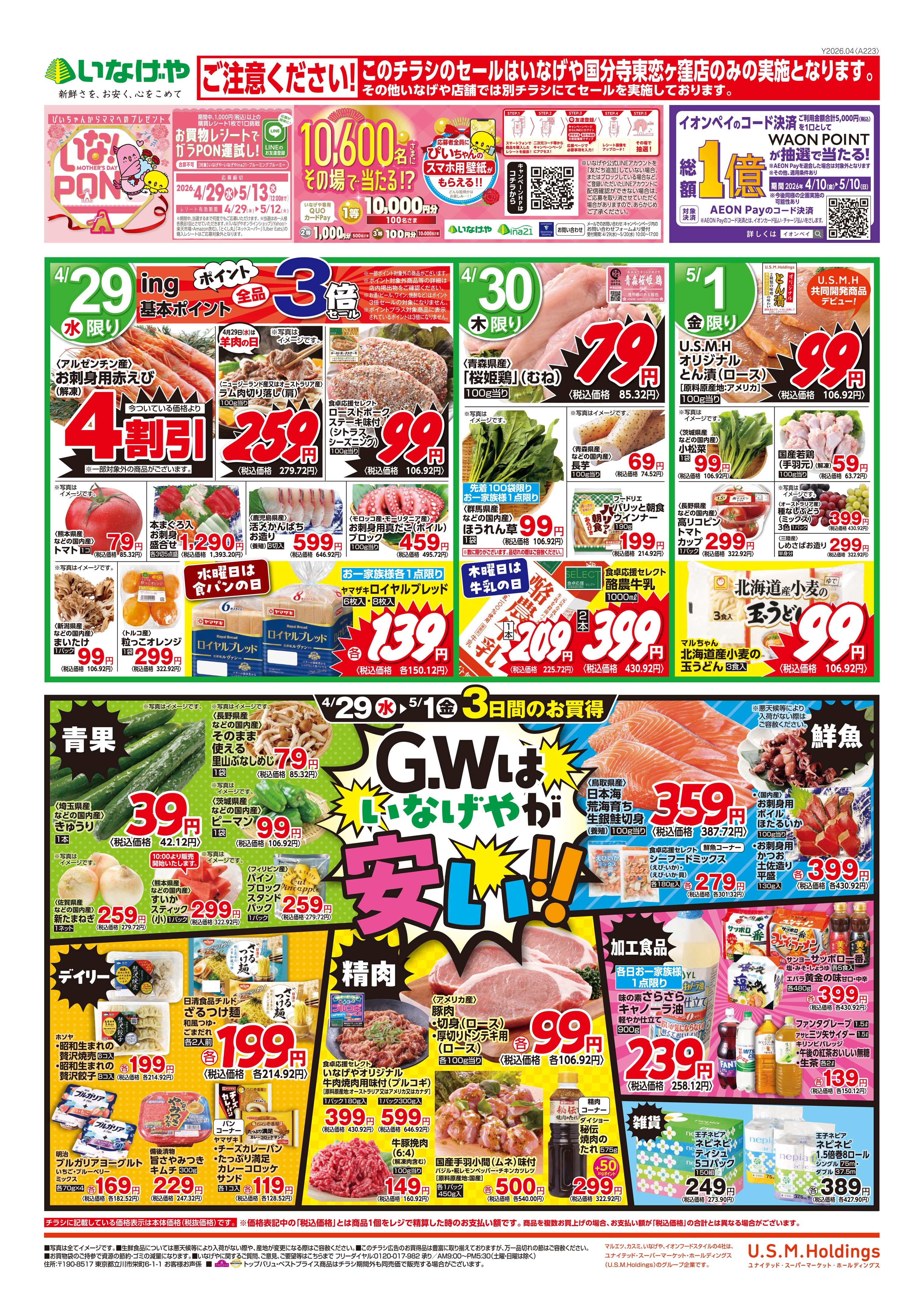 いなげやの店舗・チラシを一覧形式で掲載しています。店舗情報やオトクなチラシを見たいいなげやのお店を簡単にチェックできます。