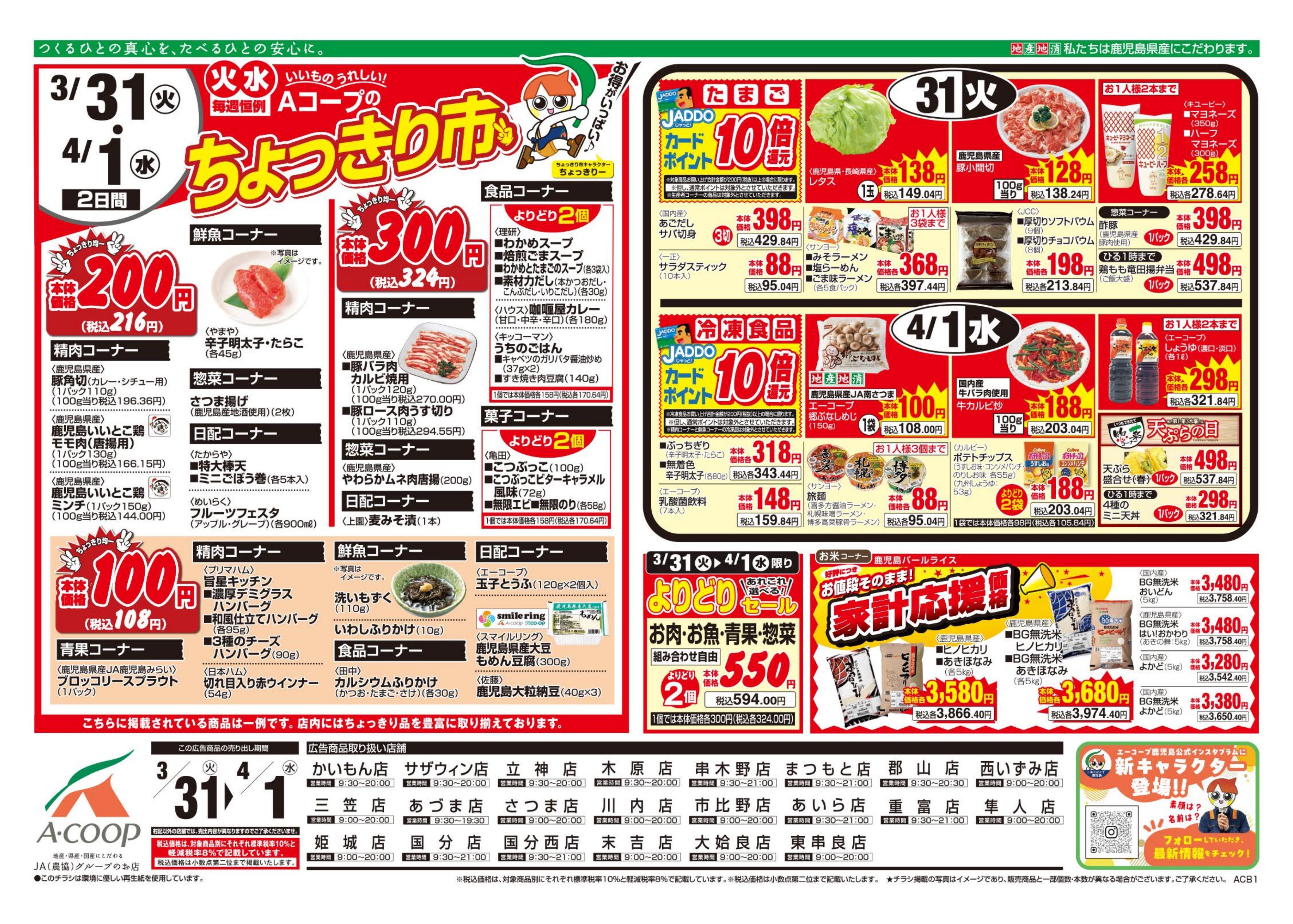 エーコープ鹿児島の店舗・チラシを一覧形式で掲載しています。店舗情報やオトクなチラシを見たいエーコープ鹿児島のお店を簡単にチェックできます。