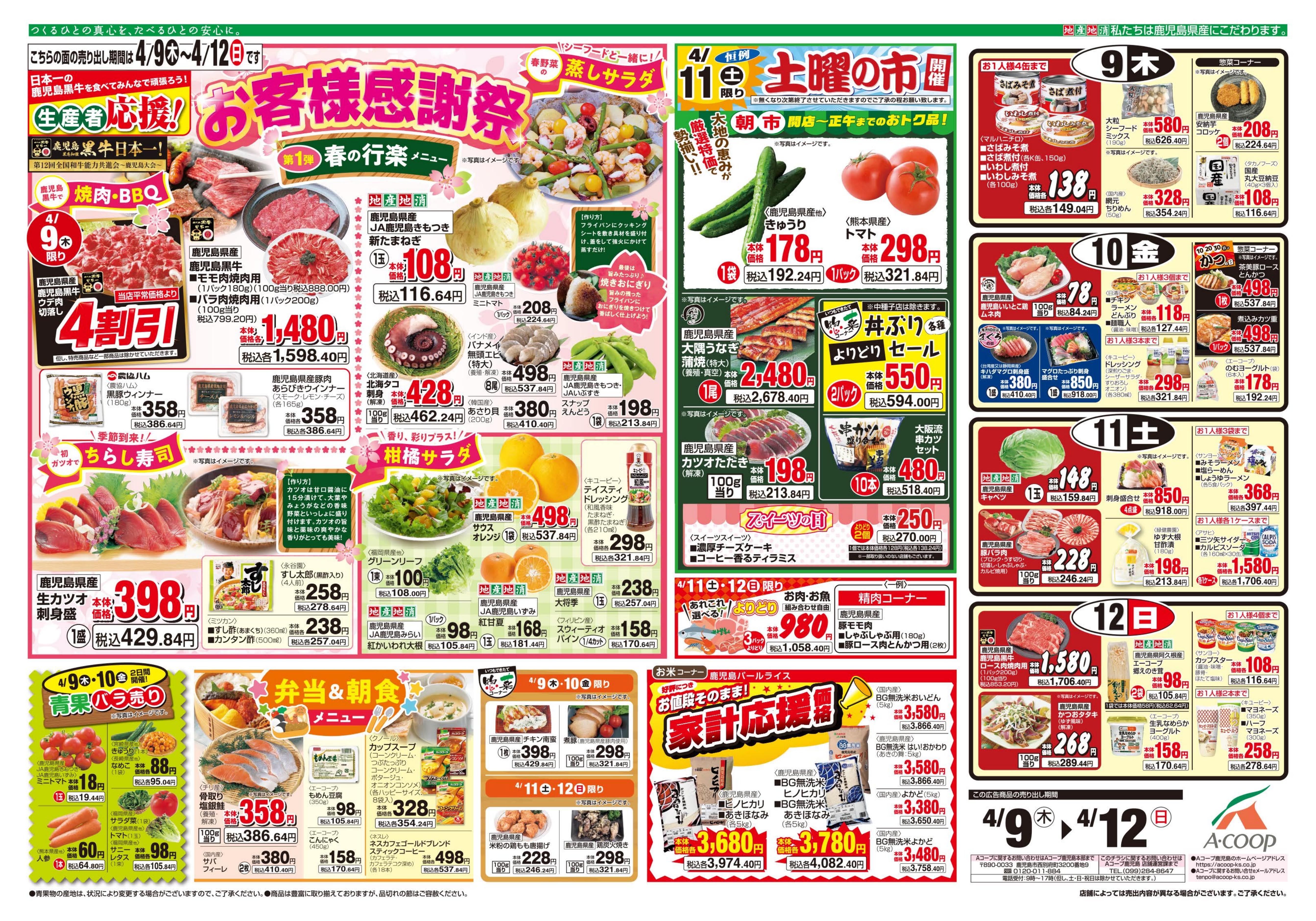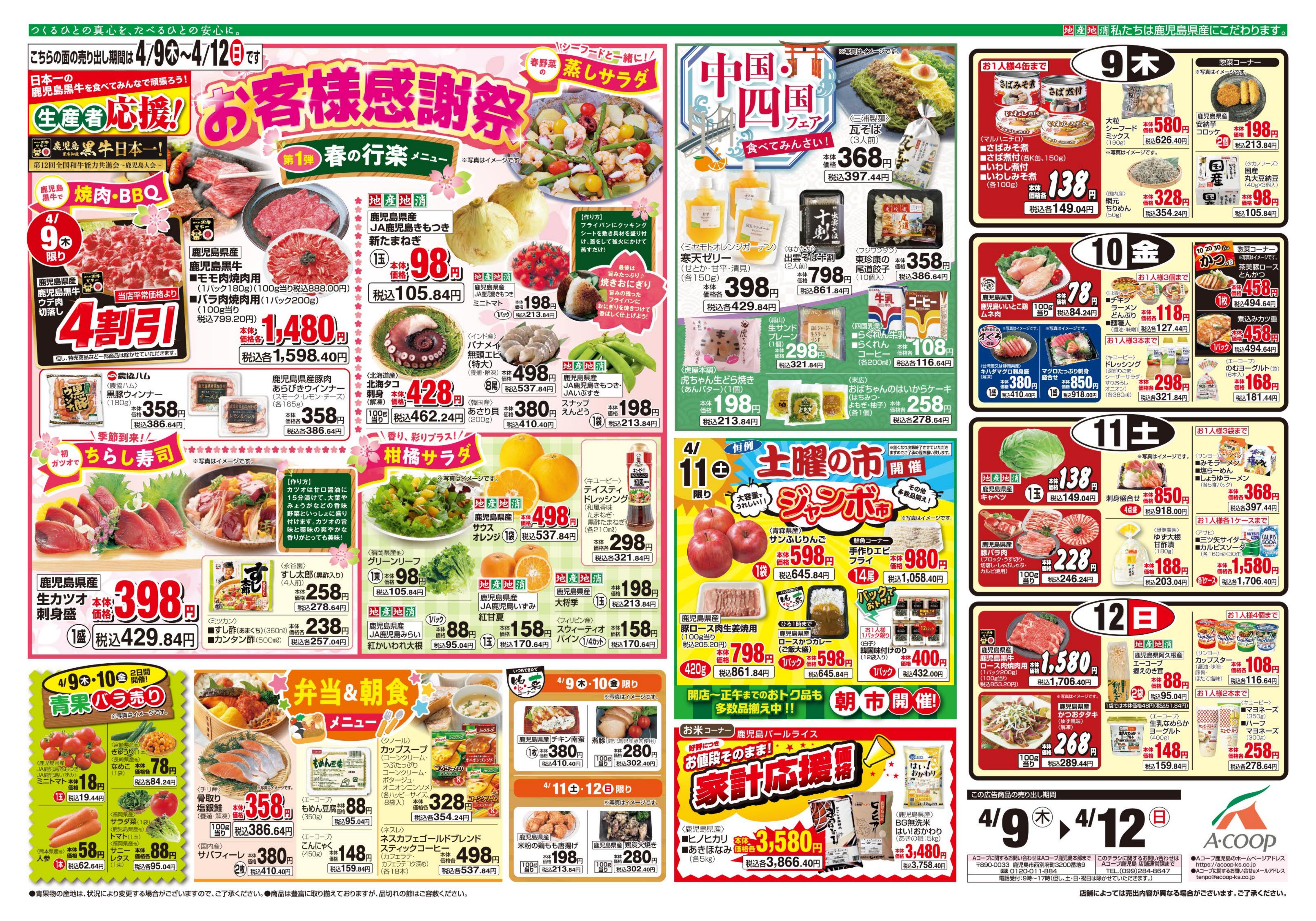 エーコープ鹿児島の店舗・チラシを一覧形式で掲載しています。店舗情報やオトクなチラシを見たいエーコープ鹿児島のお店を簡単にチェックできます。