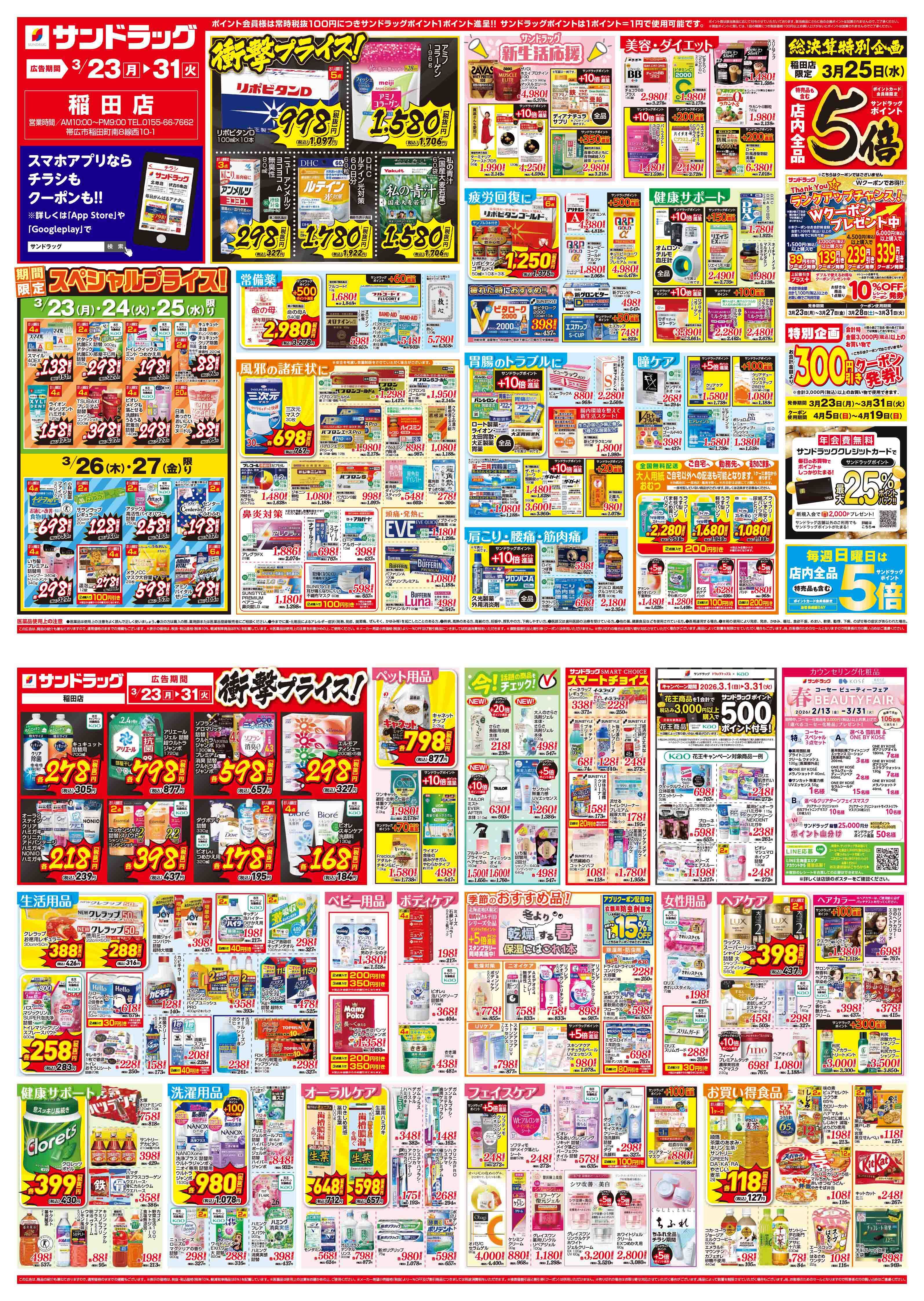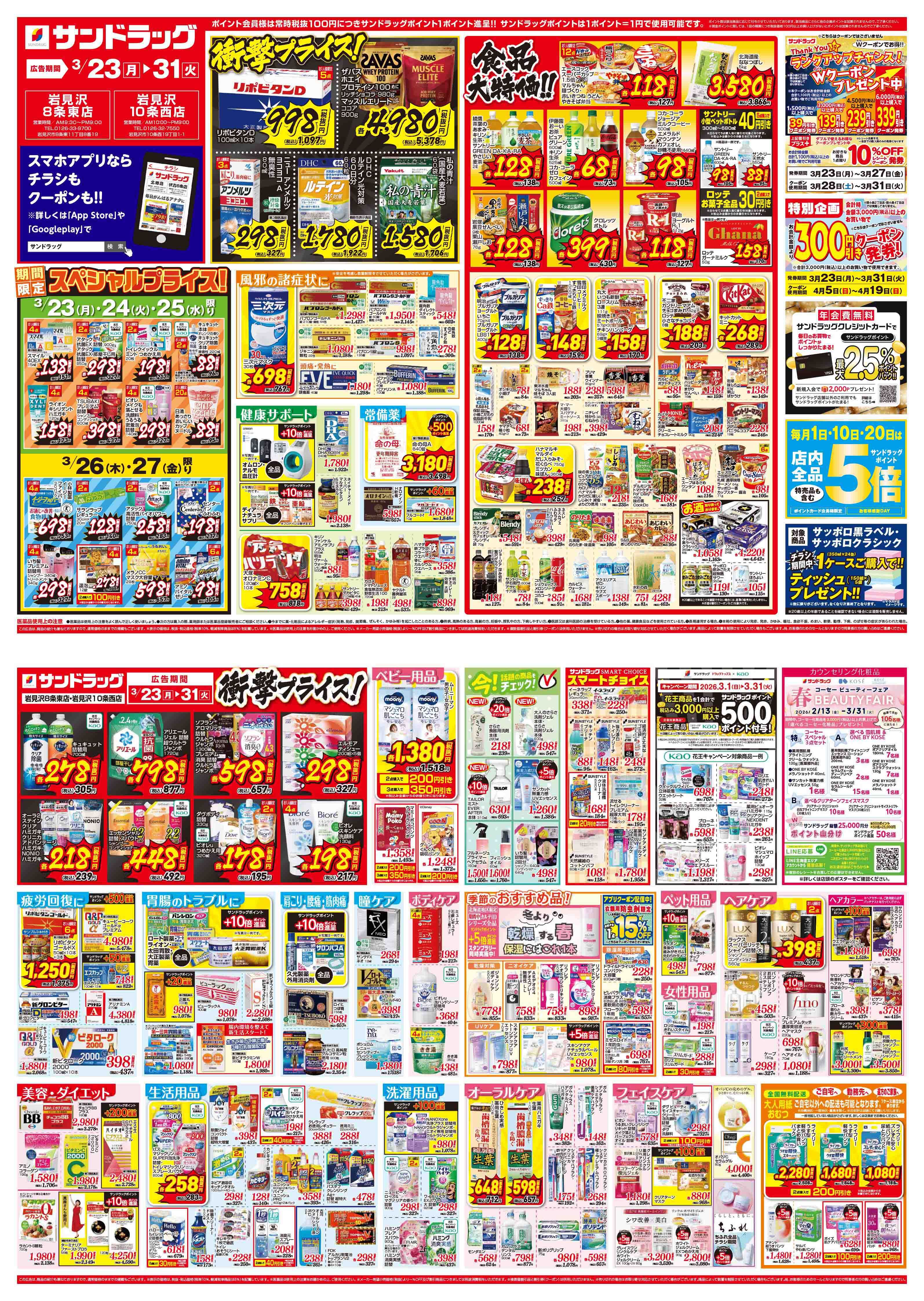 サンドラッグの店舗・チラシを一覧形式で掲載しています。店舗情報やオトクなチラシを見たいサンドラッグのお店を簡単にチェックできます。