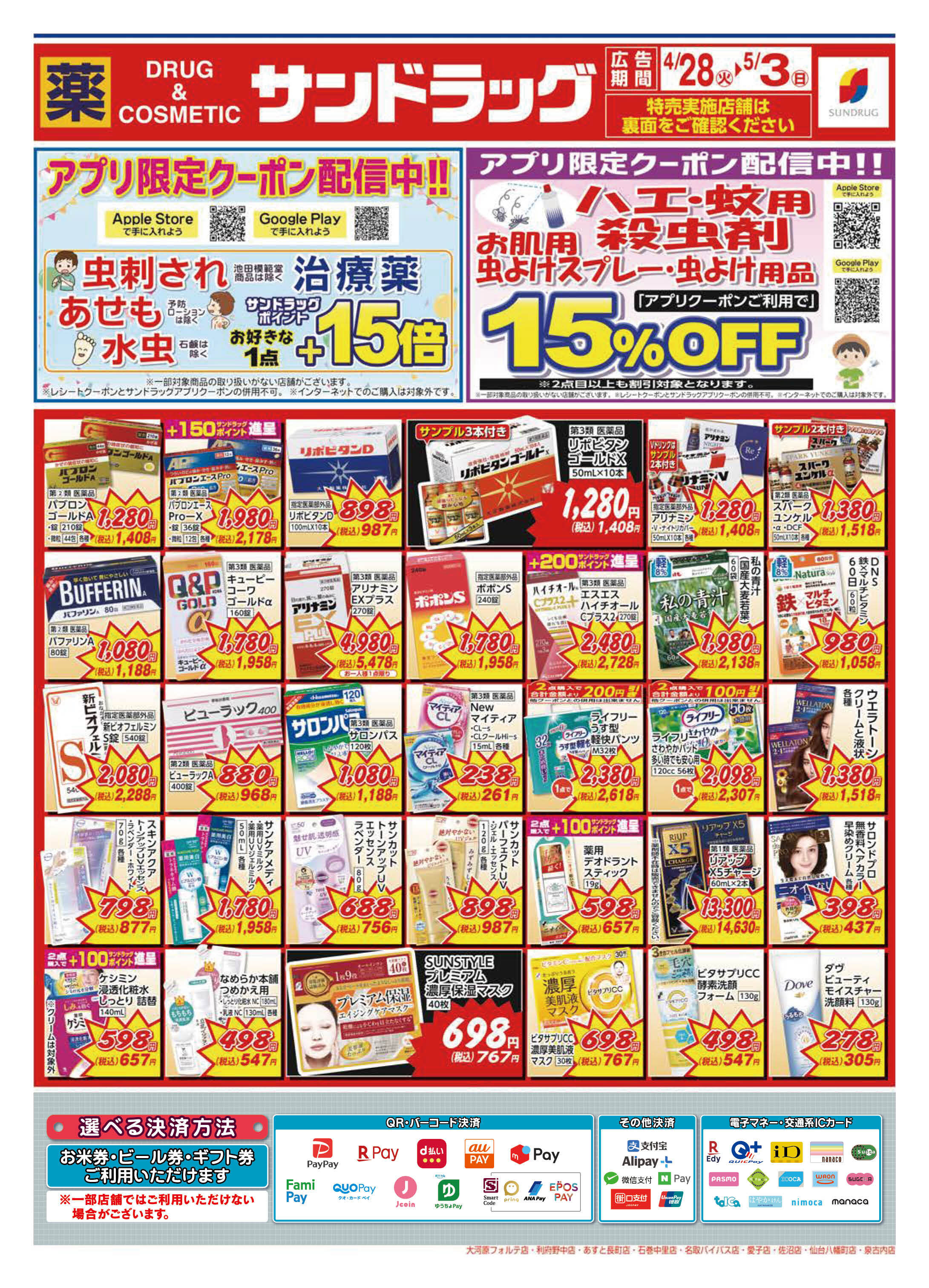 サンドラッグの店舗・チラシを一覧形式で掲載しています。店舗情報やオトクなチラシを見たいサンドラッグのお店を簡単にチェックできます。