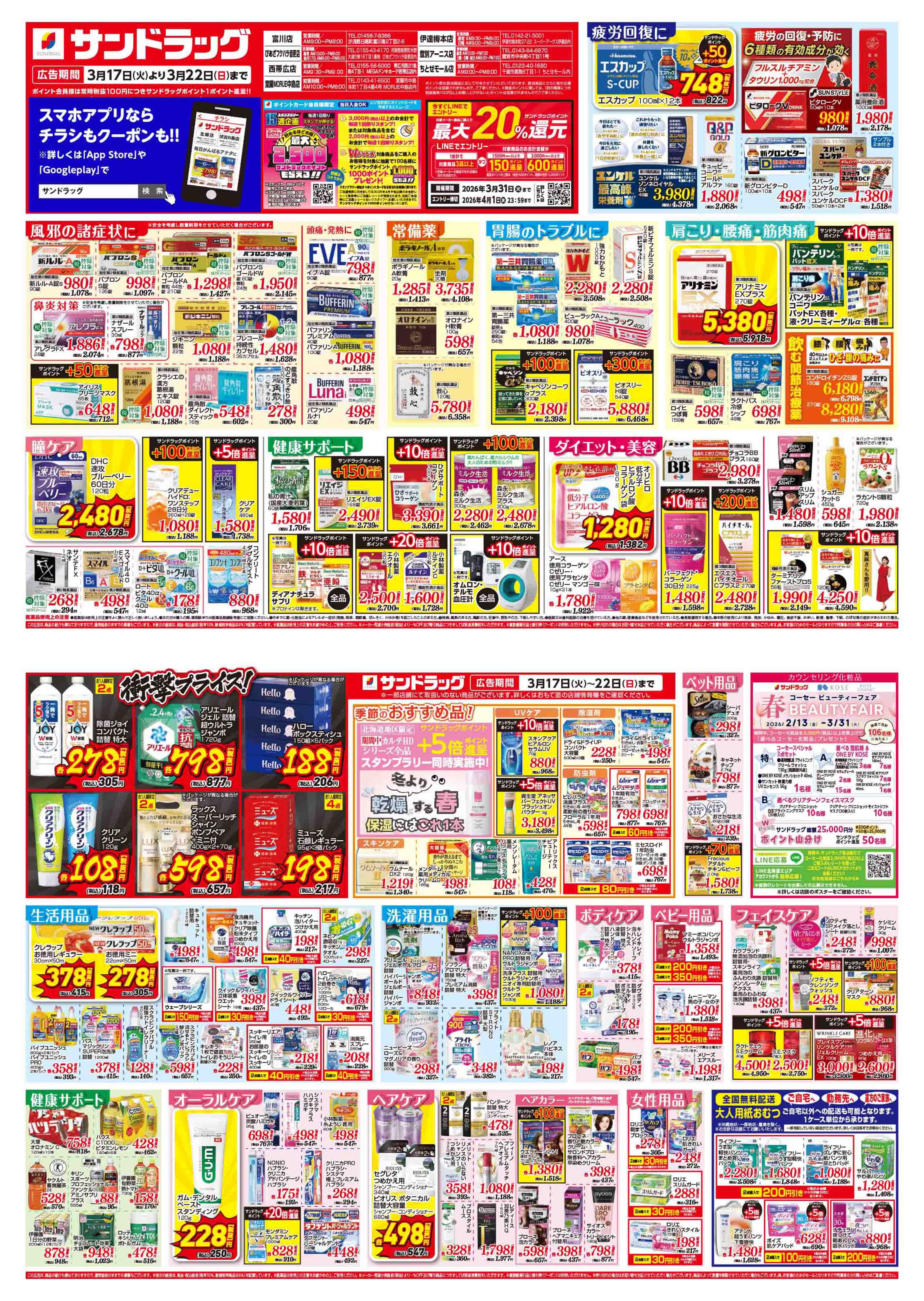 サンドラッグの店舗・チラシを一覧形式で掲載しています。店舗情報やオトクなチラシを見たいサンドラッグのお店を簡単にチェックできます。