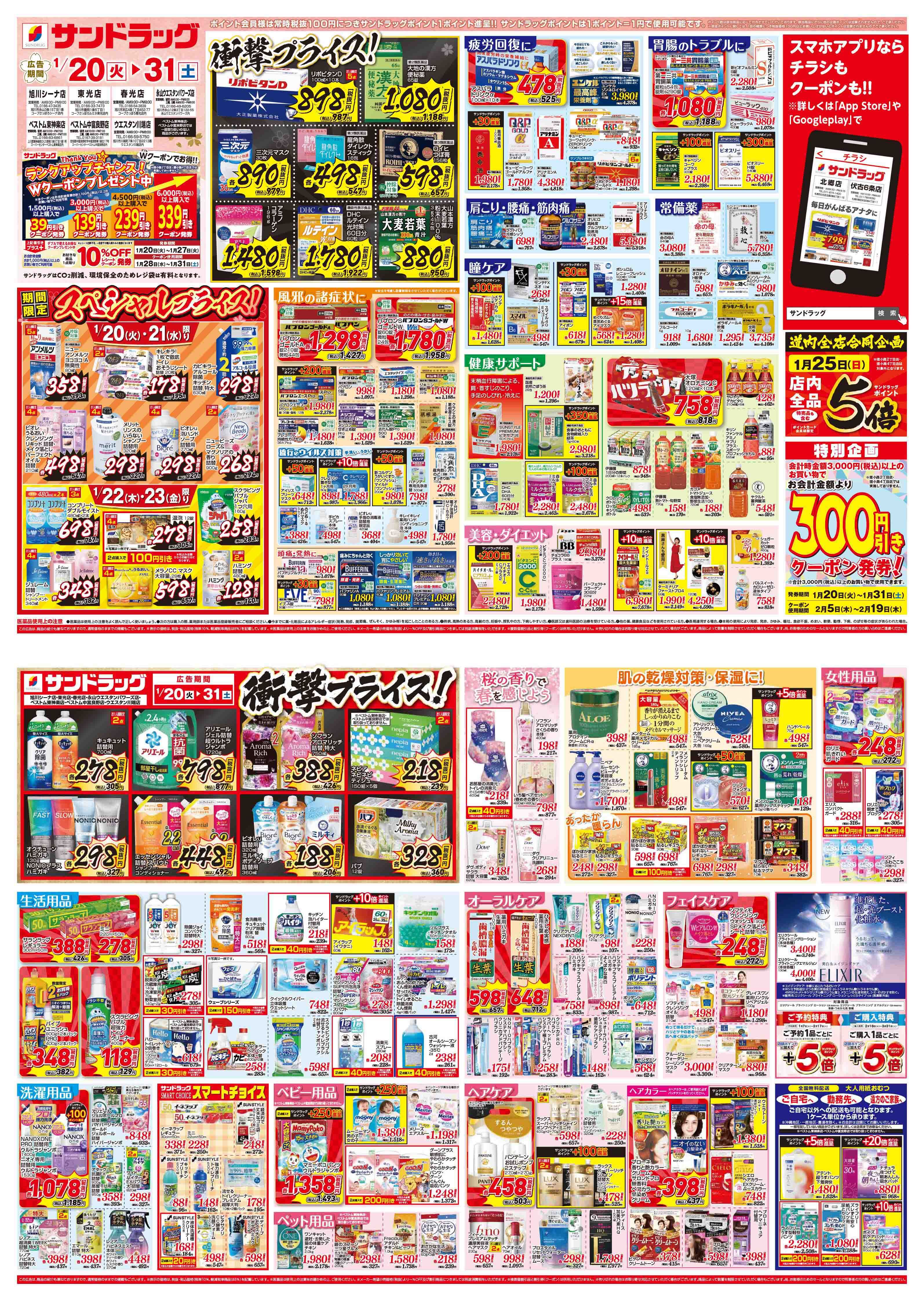サンドラッグの店舗・チラシを一覧形式で掲載しています。店舗情報やオトクなチラシを見たいサンドラッグのお店を簡単にチェックできます。