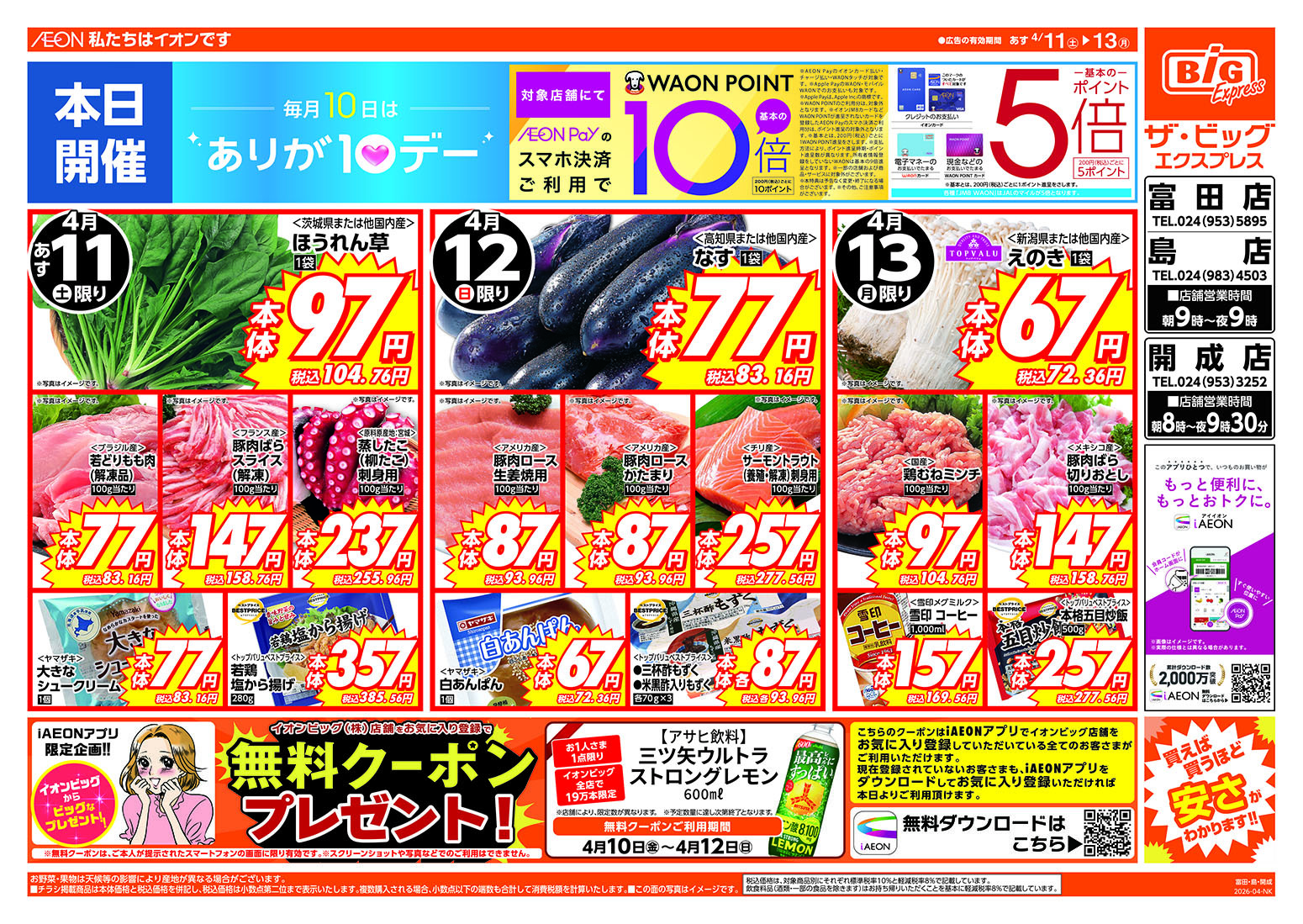 ザ・ビッグエクスプレスの店舗・チラシを一覧形式で掲載しています。店舗情報やオトクなチラシを見たいザ・ビッグエクスプレスのお店を簡単にチェックできます。
