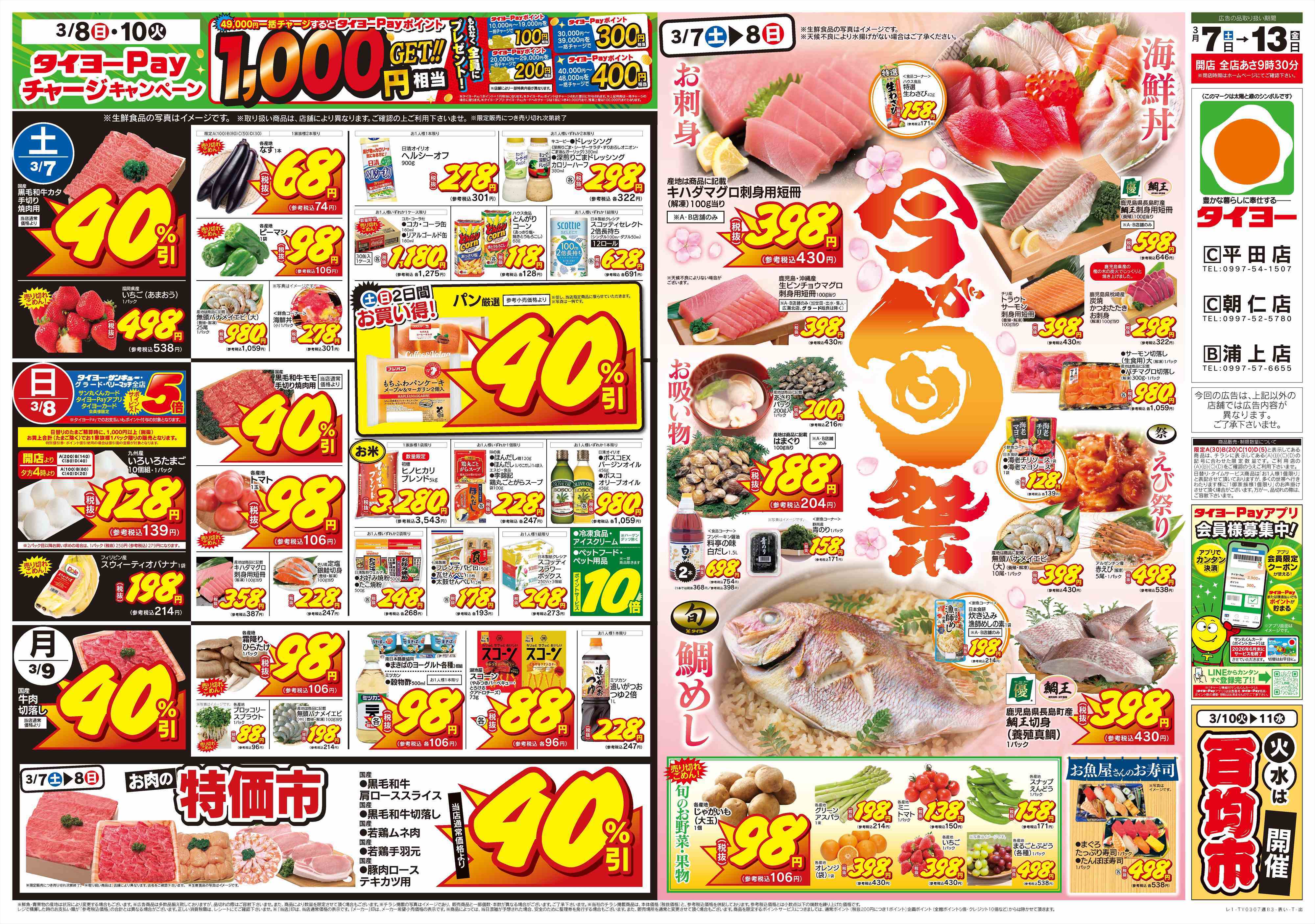 タイヨーの店舗・チラシを一覧形式で掲載しています。店舗情報やオトクなチラシを見たいタイヨーのお店を簡単にチェックできます。