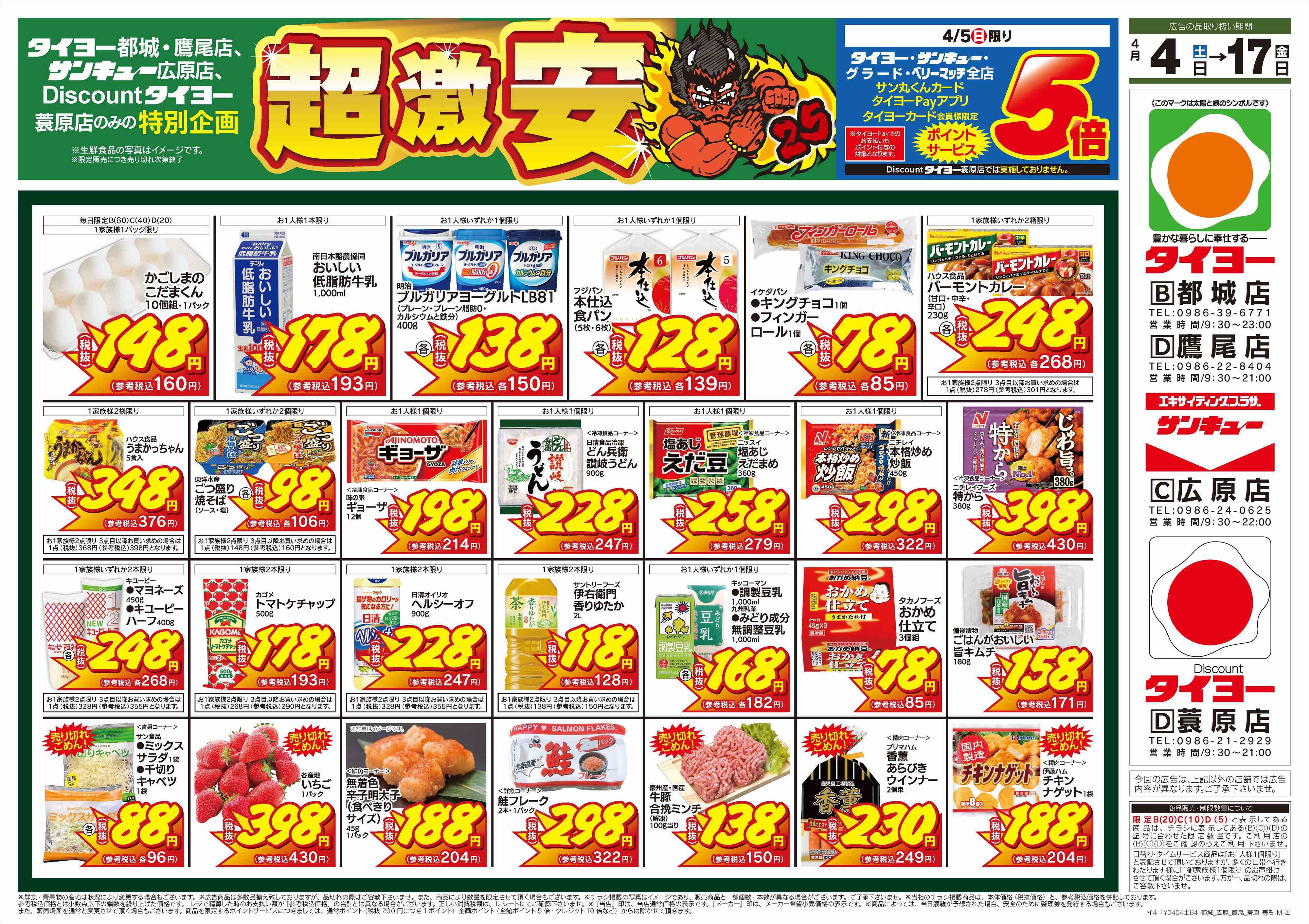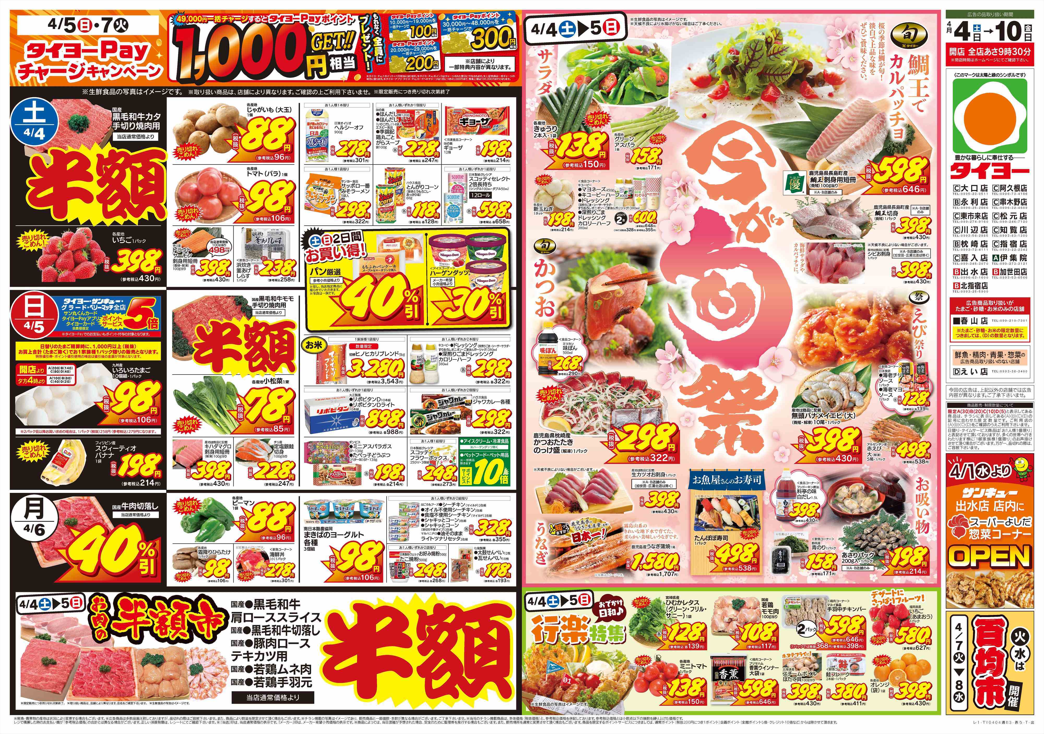 タイヨーの店舗・チラシを一覧形式で掲載しています。店舗情報やオトクなチラシを見たいタイヨーのお店を簡単にチェックできます。