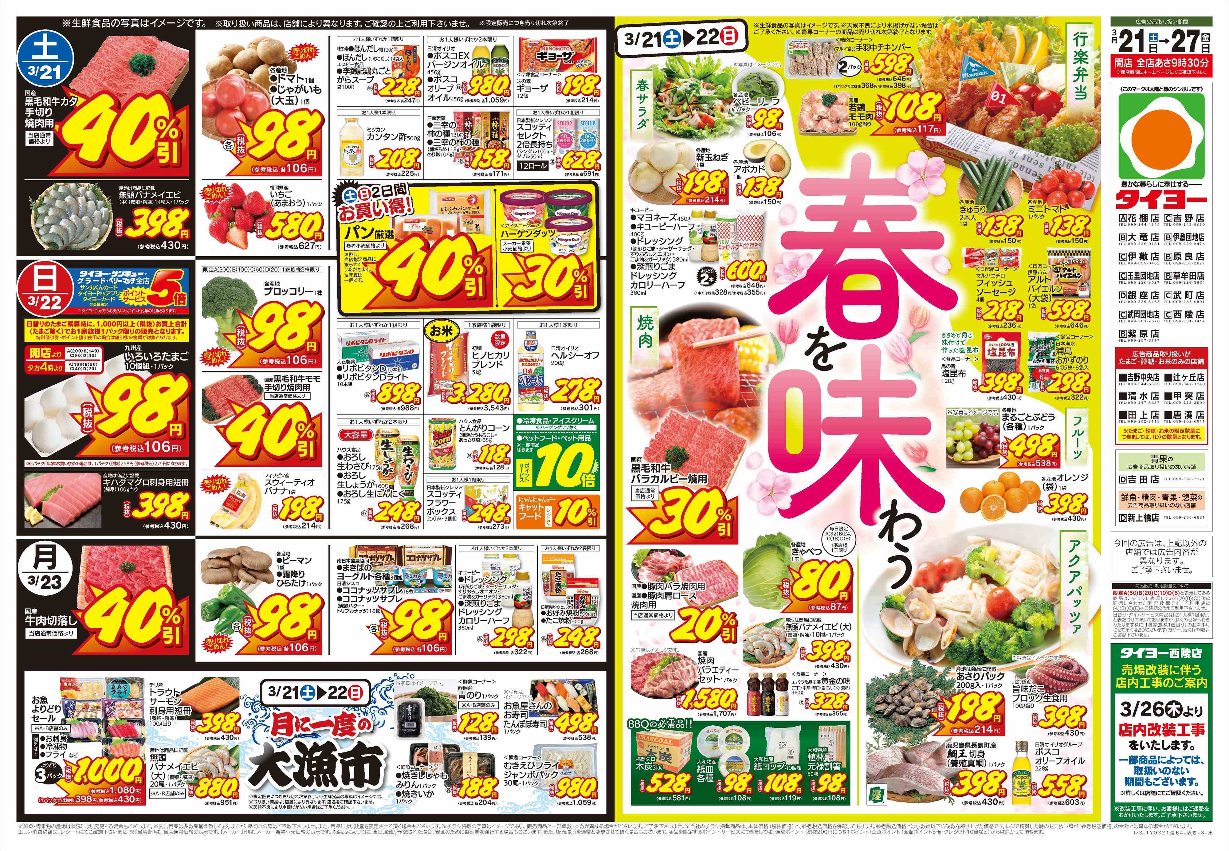 タイヨーの店舗・チラシを一覧形式で掲載しています。店舗情報やオトクなチラシを見たいタイヨーのお店を簡単にチェックできます。