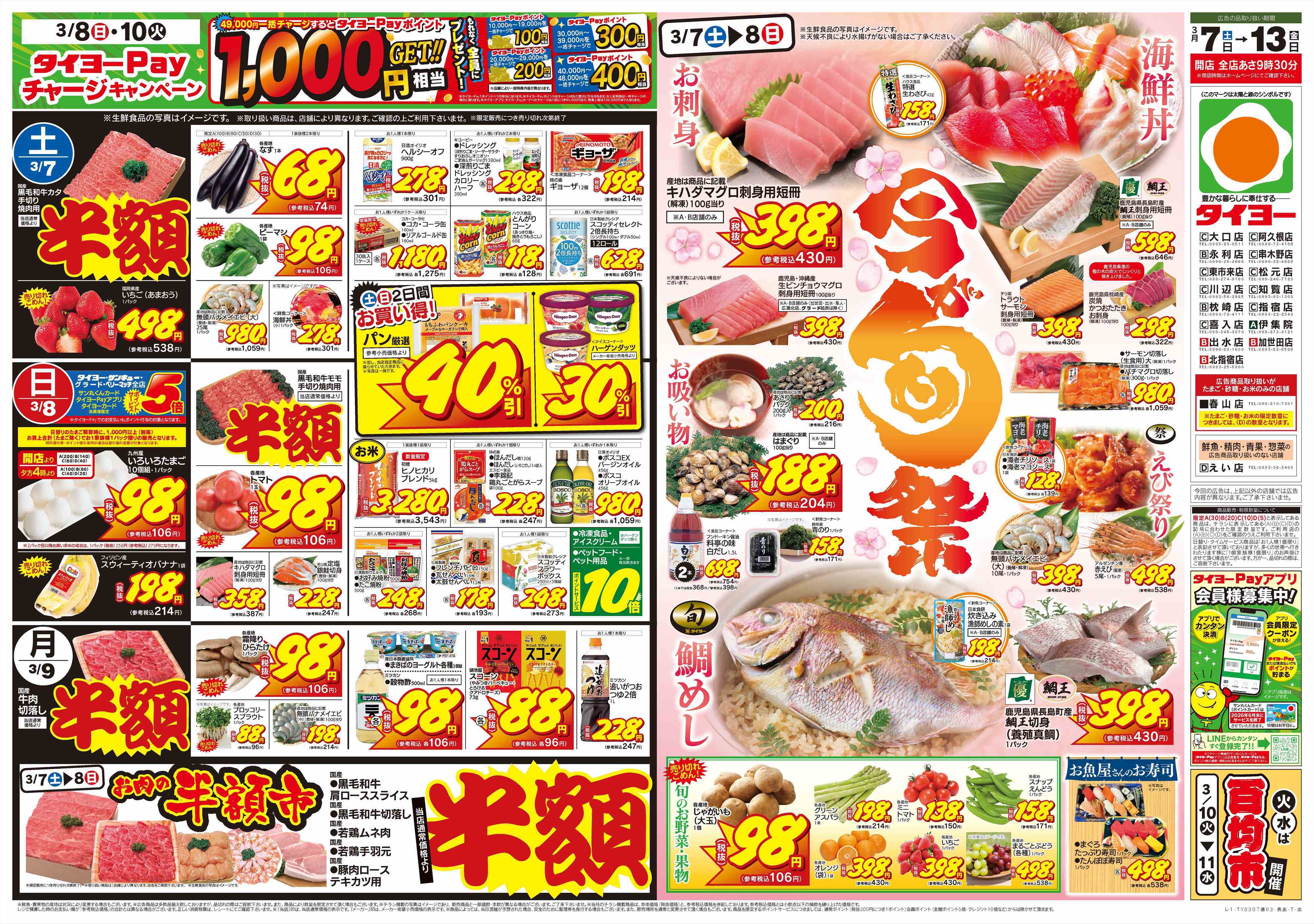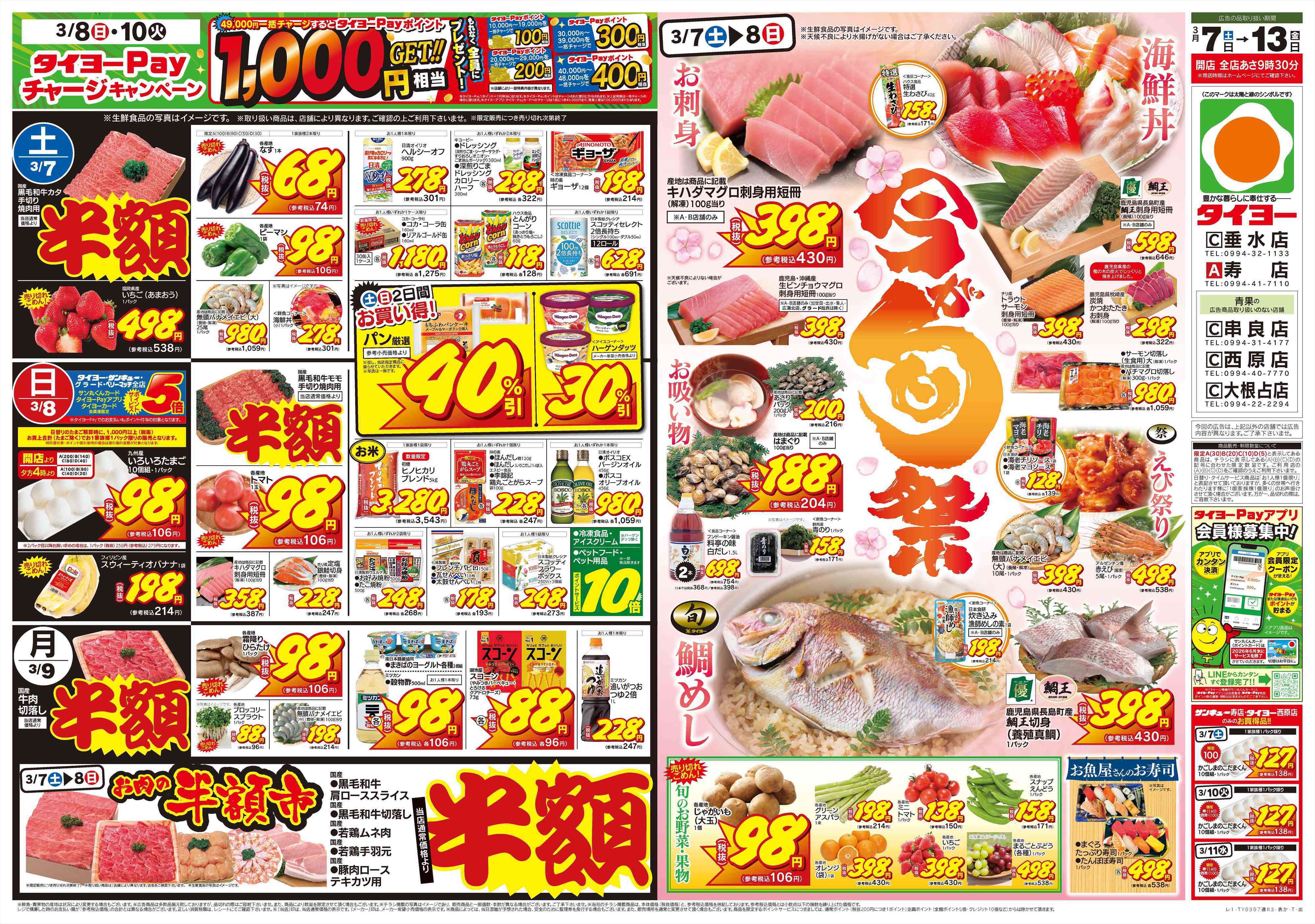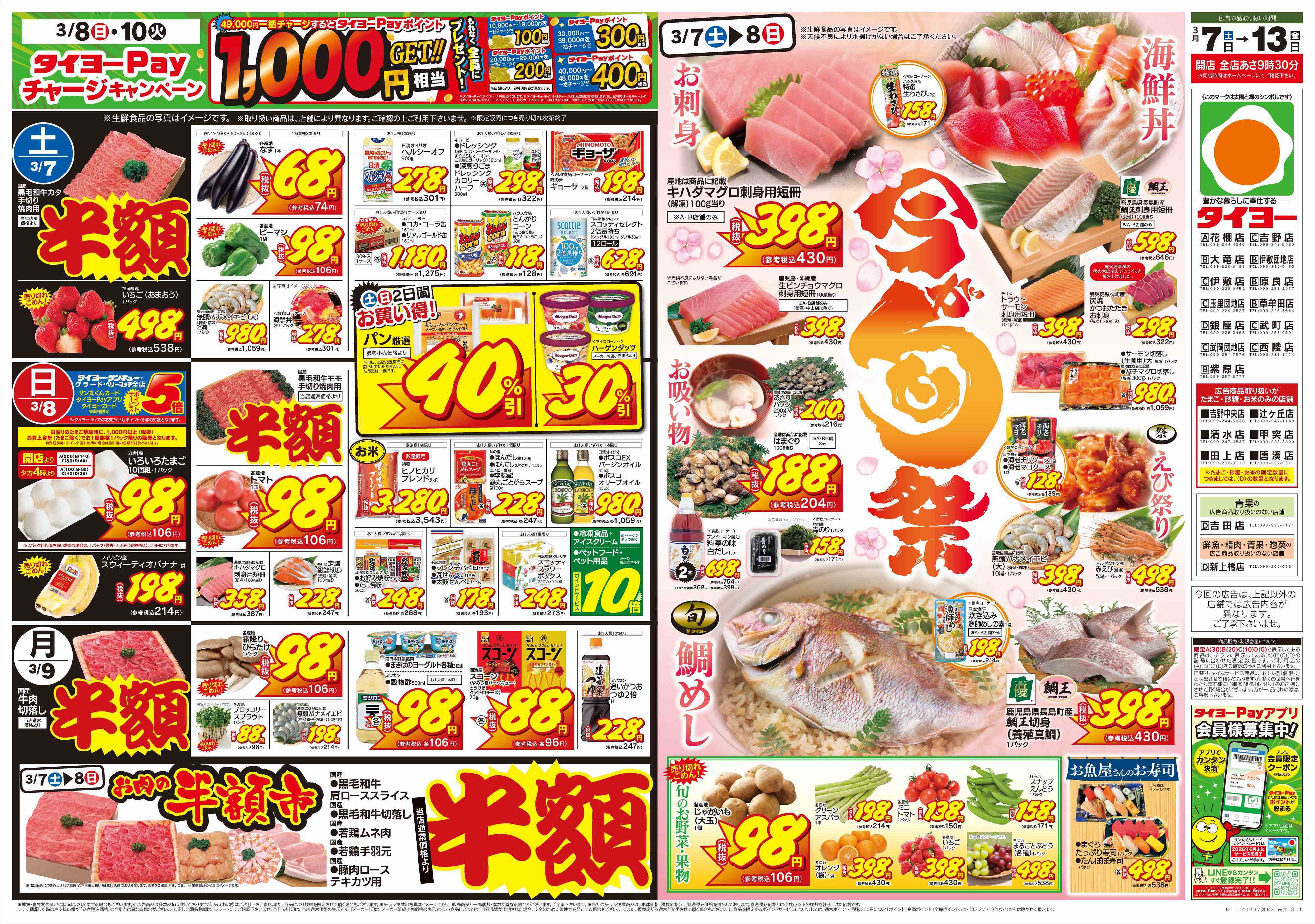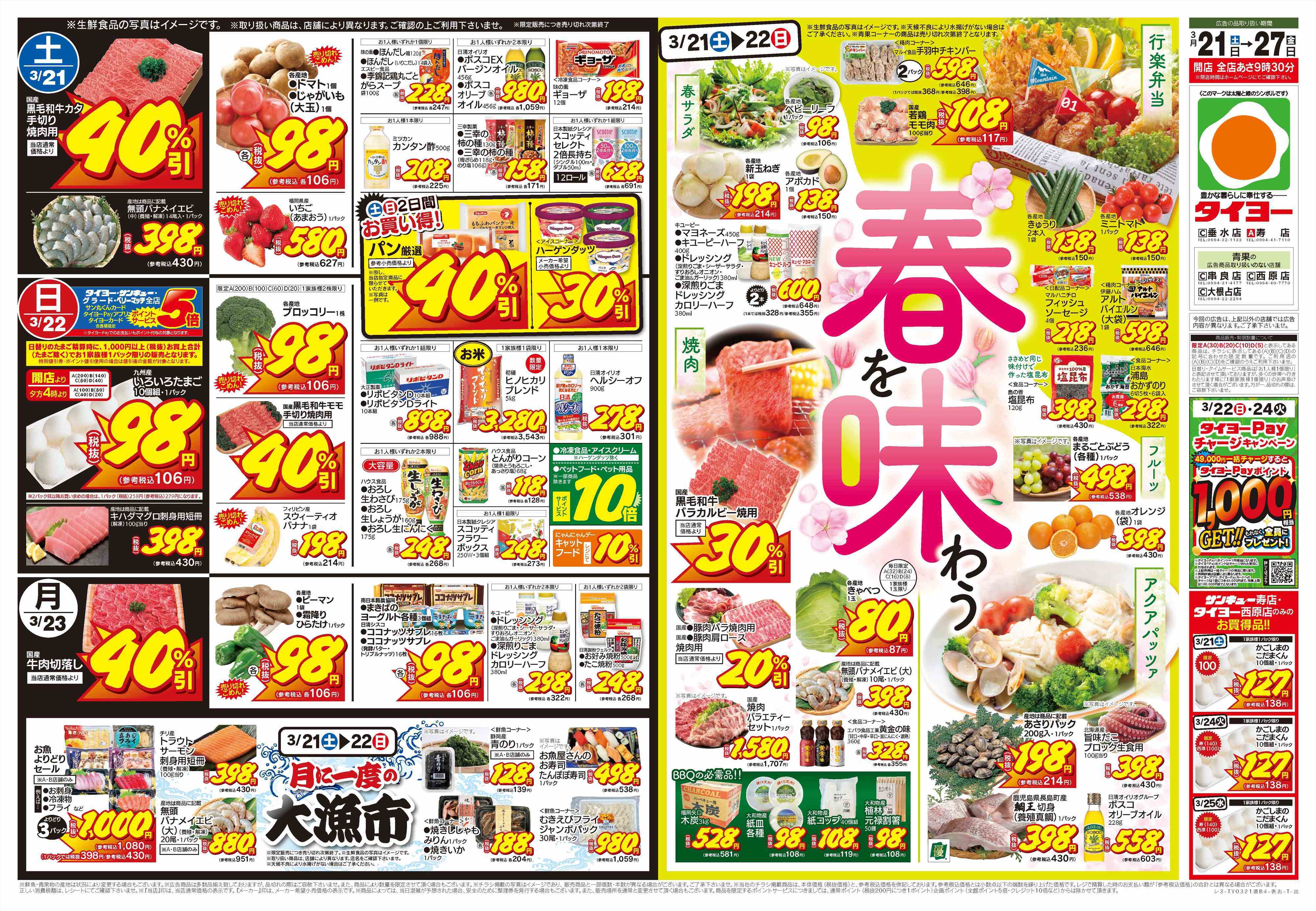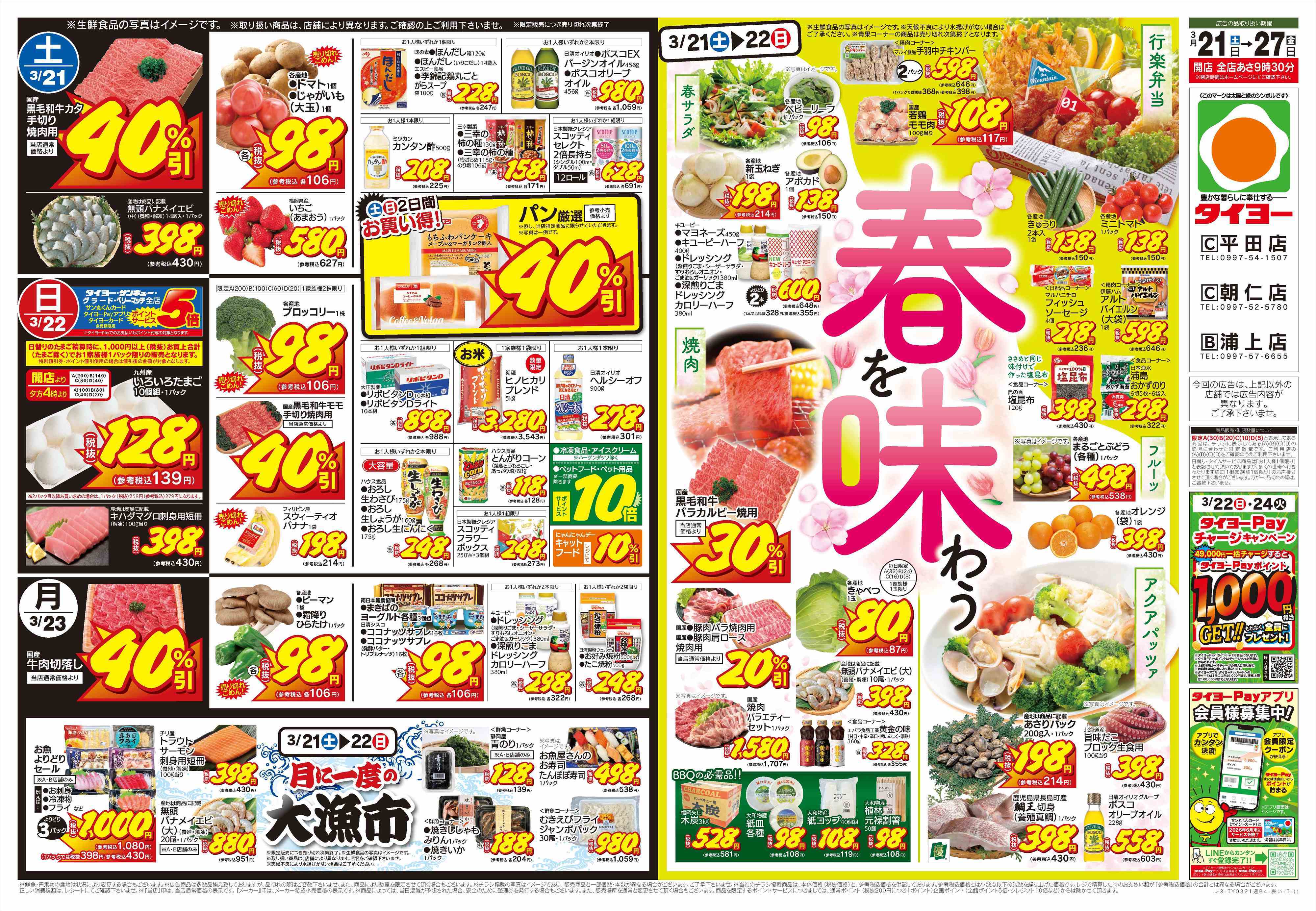 タイヨーの店舗・チラシを一覧形式で掲載しています。店舗情報やオトクなチラシを見たいタイヨーのお店を簡単にチェックできます。