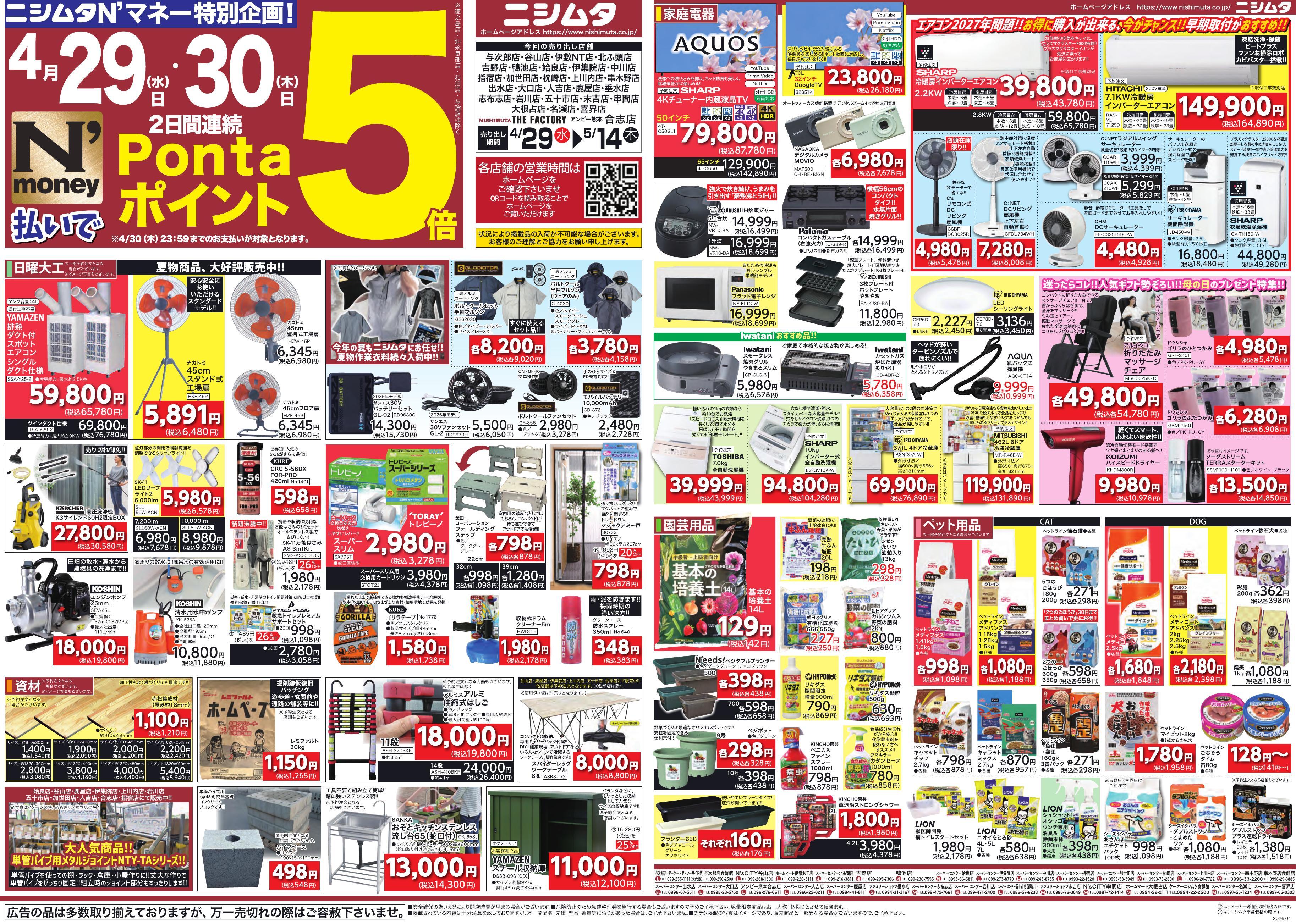 ホームマートニシムタの店舗・チラシを一覧形式で掲載しています。店舗情報やオトクなチラシを見たいホームマートニシムタのお店を簡単にチェックできます。