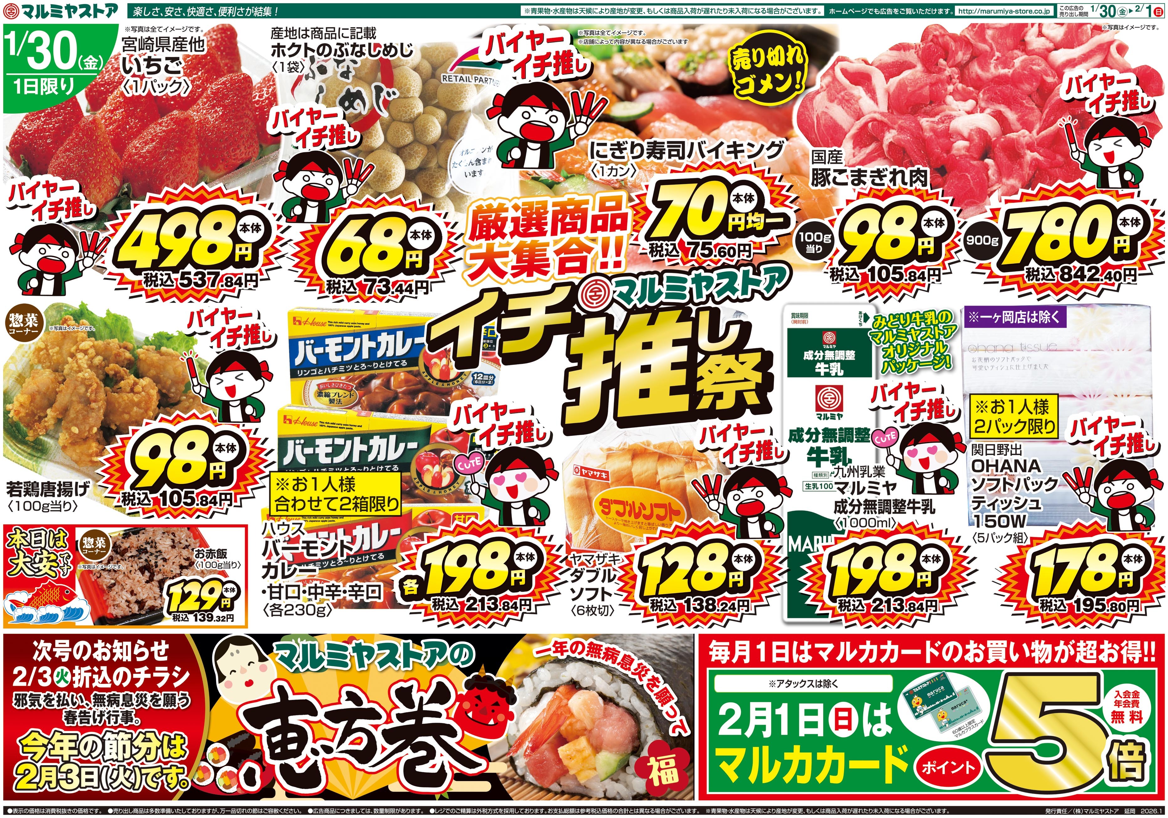マルミヤストアの店舗・チラシを一覧形式で掲載しています。店舗情報やオトクなチラシを見たいマルミヤストアのお店を簡単にチェックできます。