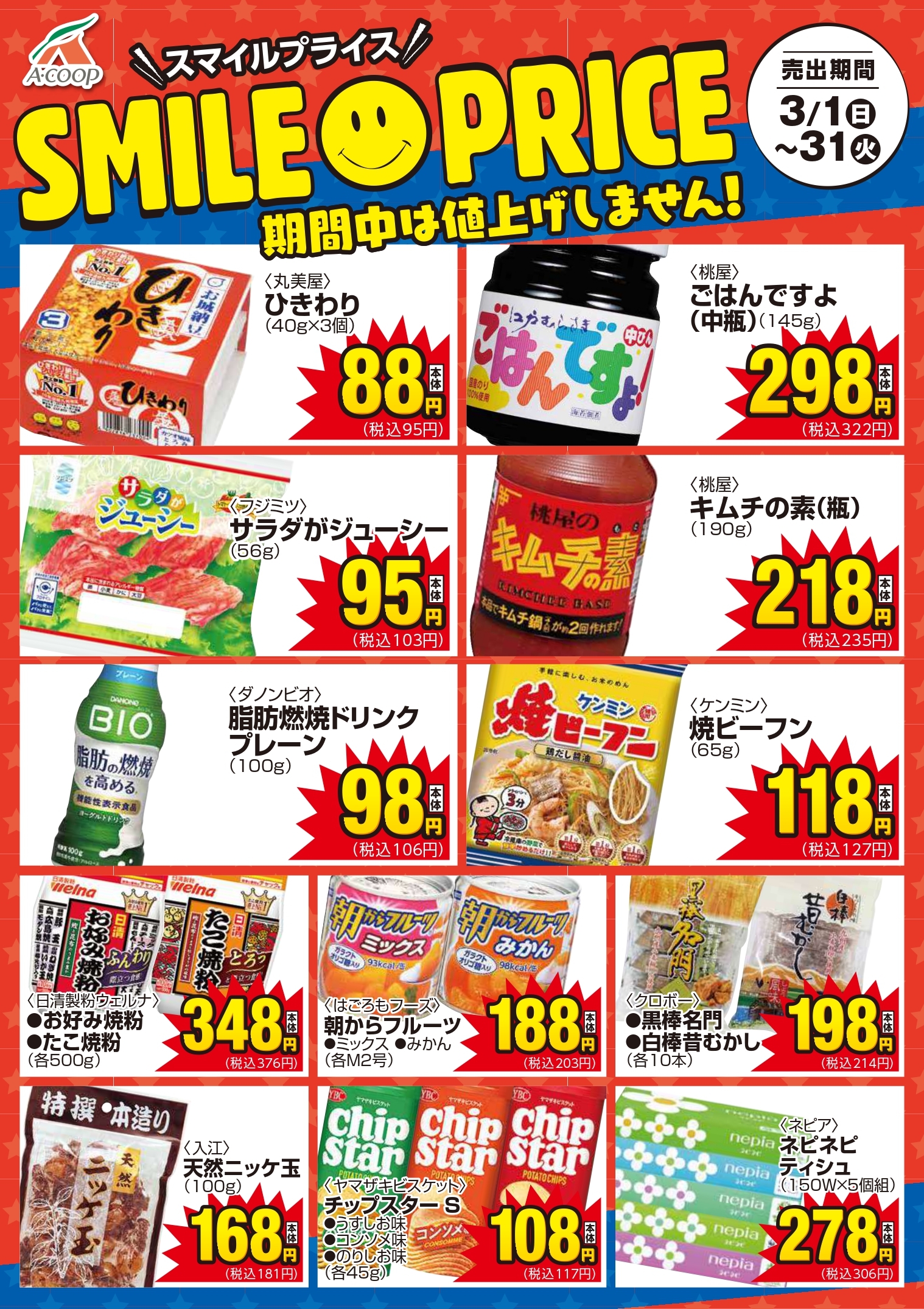 Aコープの店舗・チラシを一覧形式で掲載しています。店舗情報やオトクなチラシを見たいAコープのお店を簡単にチェックできます。