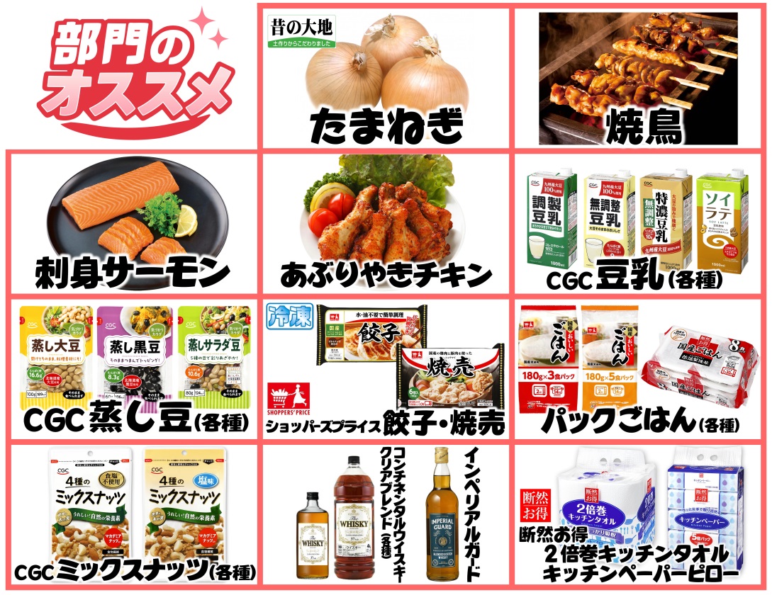 各コーナーの「部門のオススメ」マークがついた商品にご注目ください