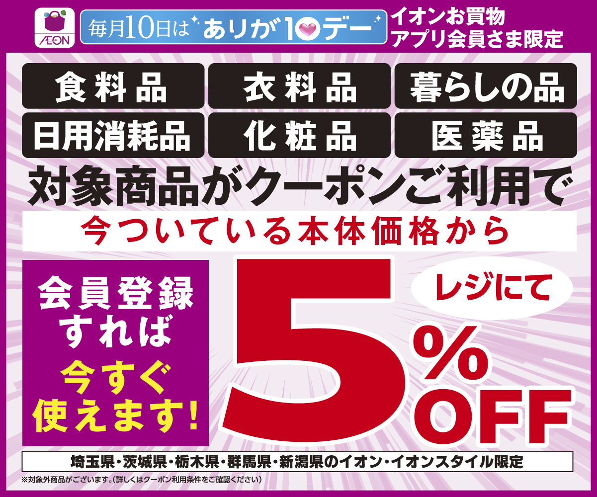 3/10(火)ありが10デー5%OFFクーポン配信!