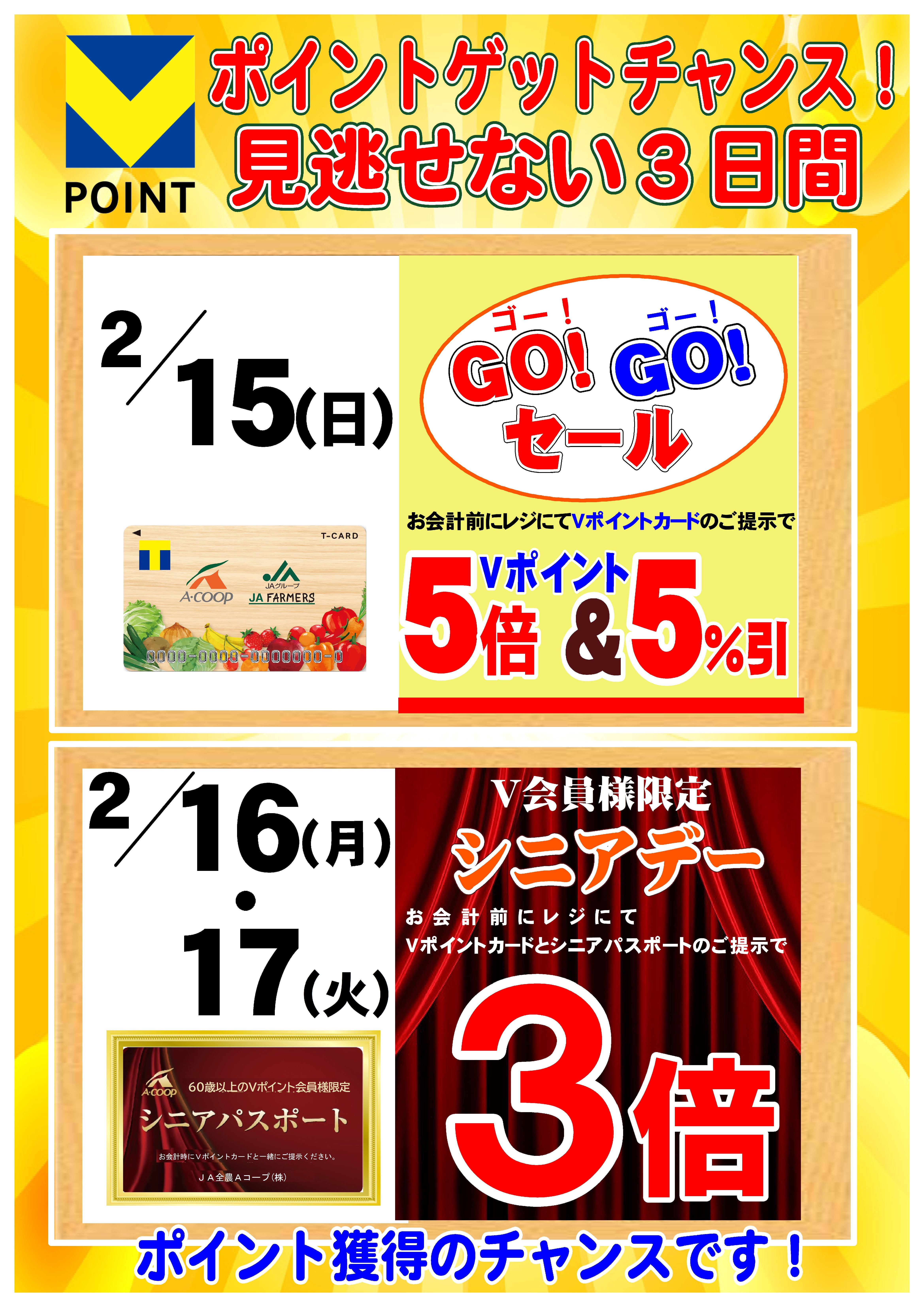レジにてVポイントカードとシニアパスポートご提示でVポイント3倍!