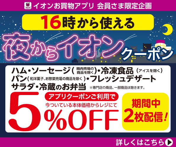 【イオンお買物アプリ】16時から使える夜からイオンクーポン