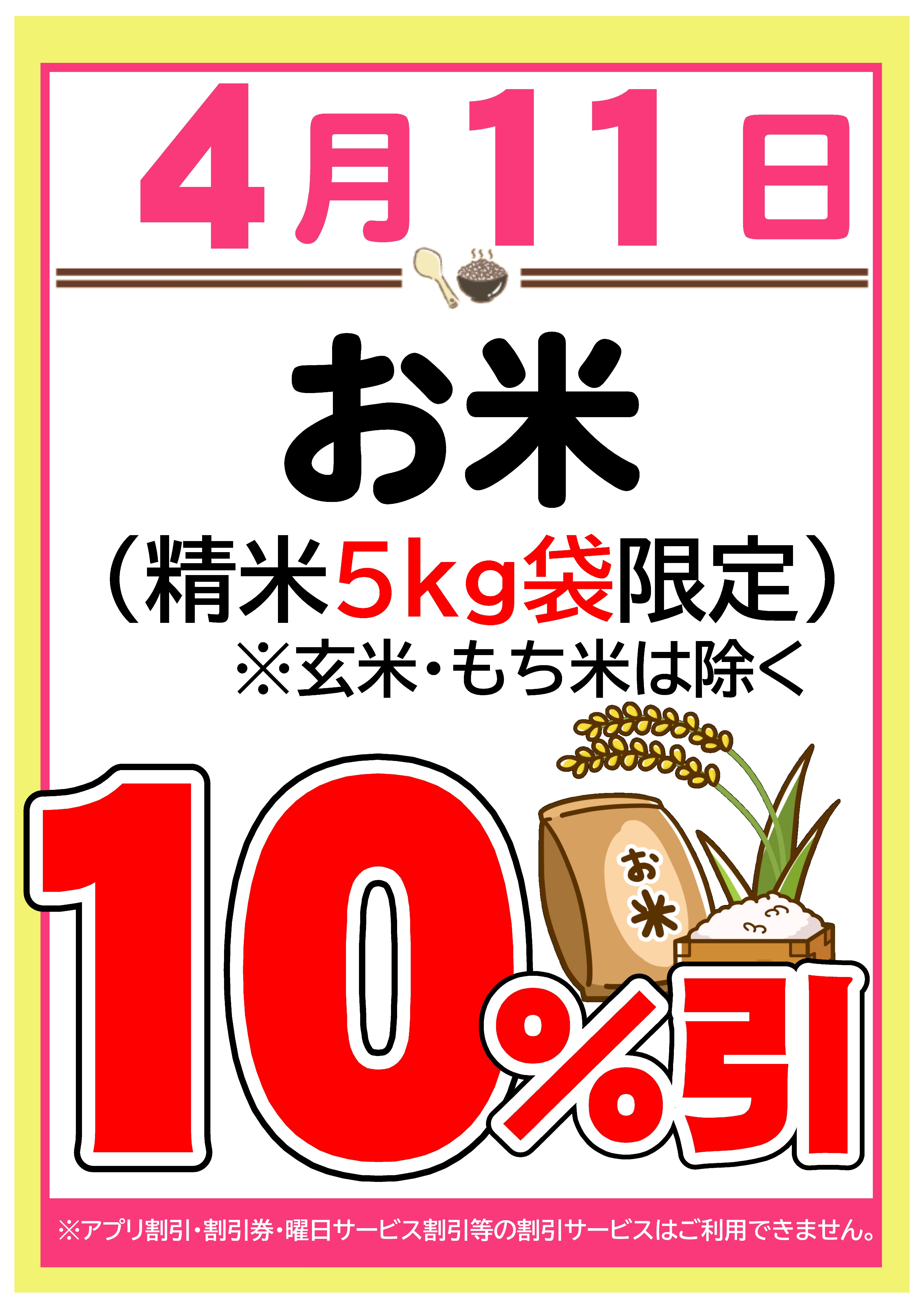 ◆ ◆ 4/11(土)お米10%引!(精米5kg限定)