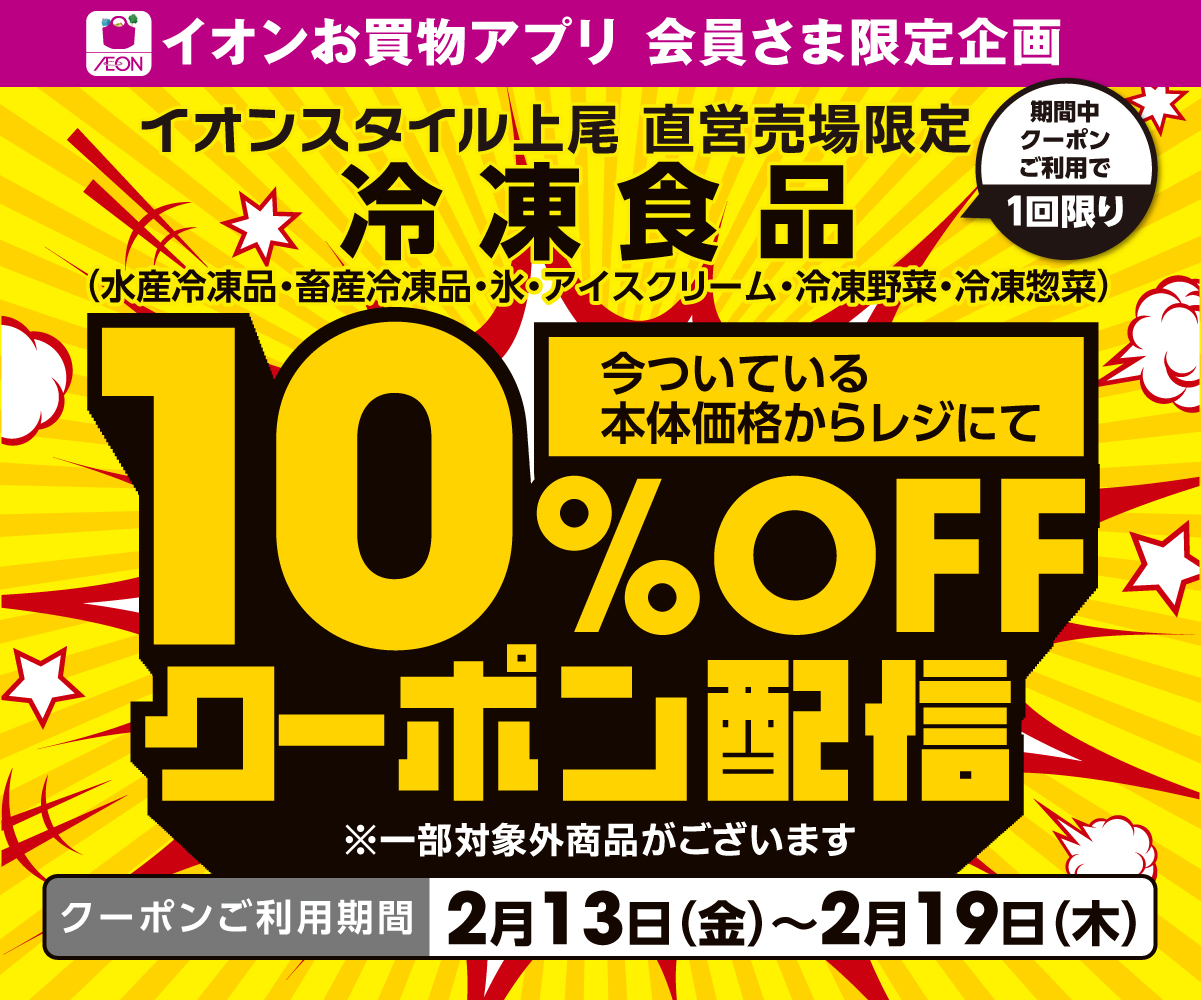 【イオンスタイル上尾】冷凍食品10%OFFアプリクーポン配信!