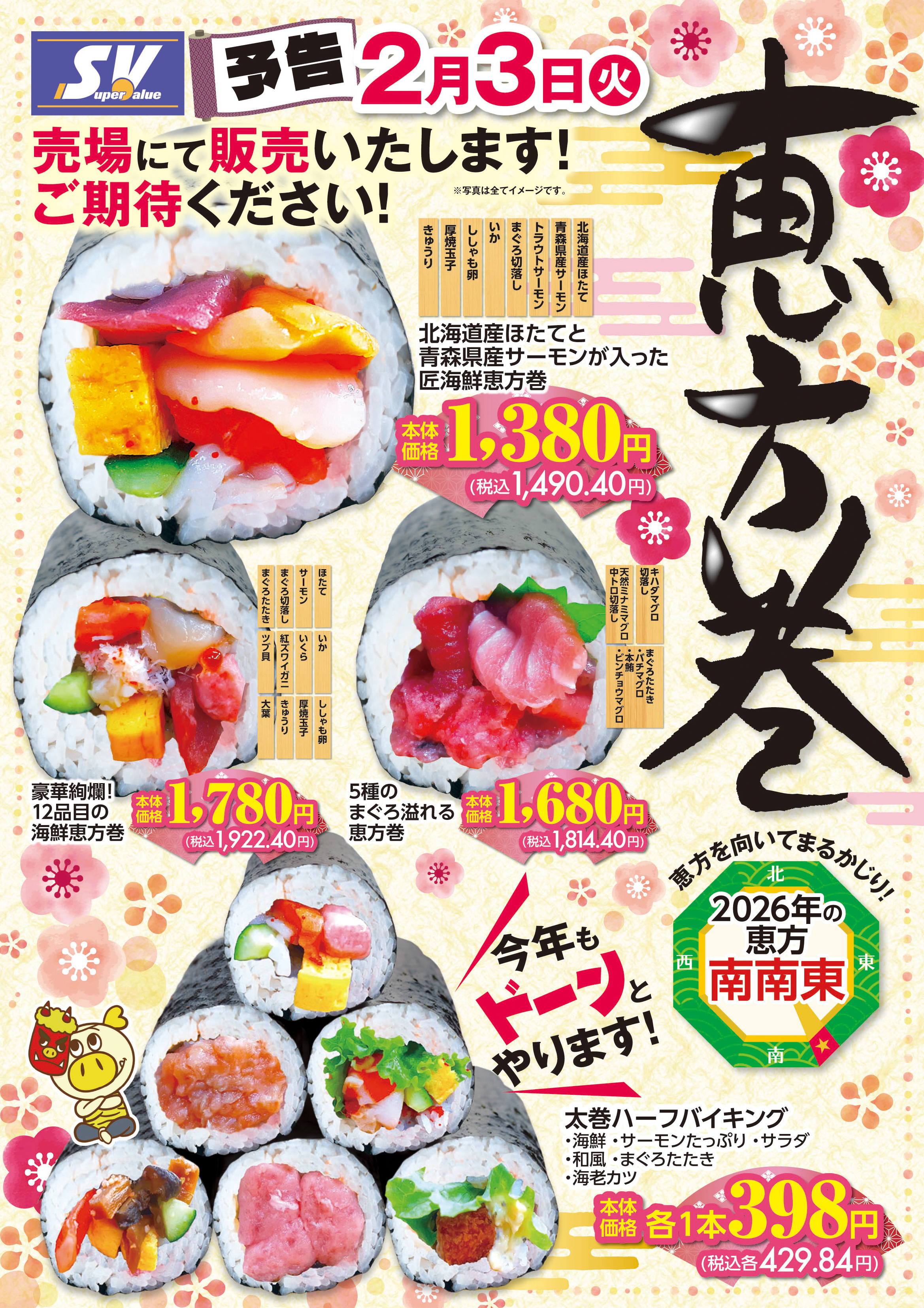「恵方巻」はぜひスーパーバリューをご利用くださいませ。