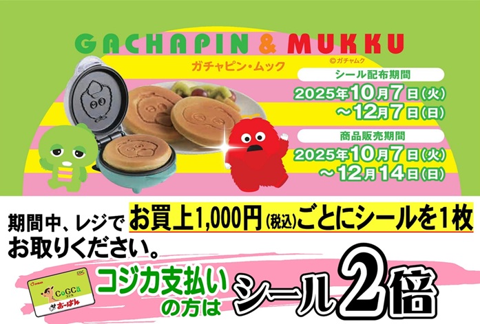 ガチャピン・ムックの生活雑貨キッチングッズシールキャンペーンのお知らせ