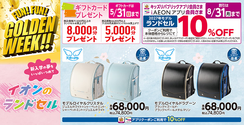 さらに5/31まではギフトカードプレゼント・8/31まではアプリクーポンご利用で10%OFFです!