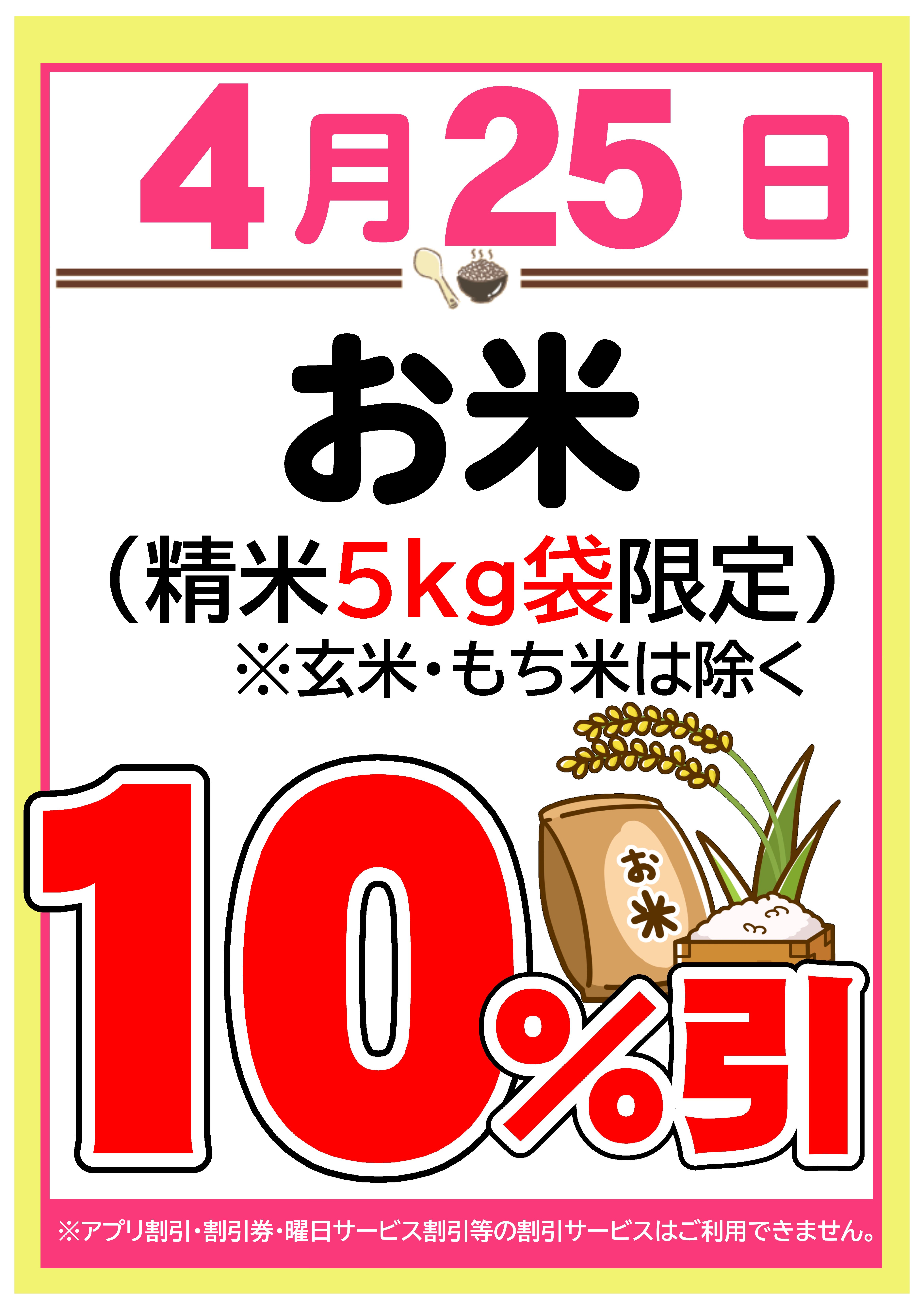 ◆ 4/25(土)お米10%引!(精米5kg限定)