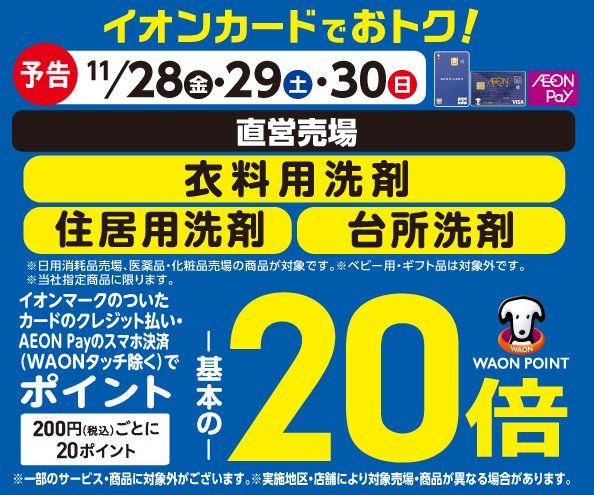 【予告】衣料用洗剤・住居用洗剤の各売場でWAON POINT基本の20倍!