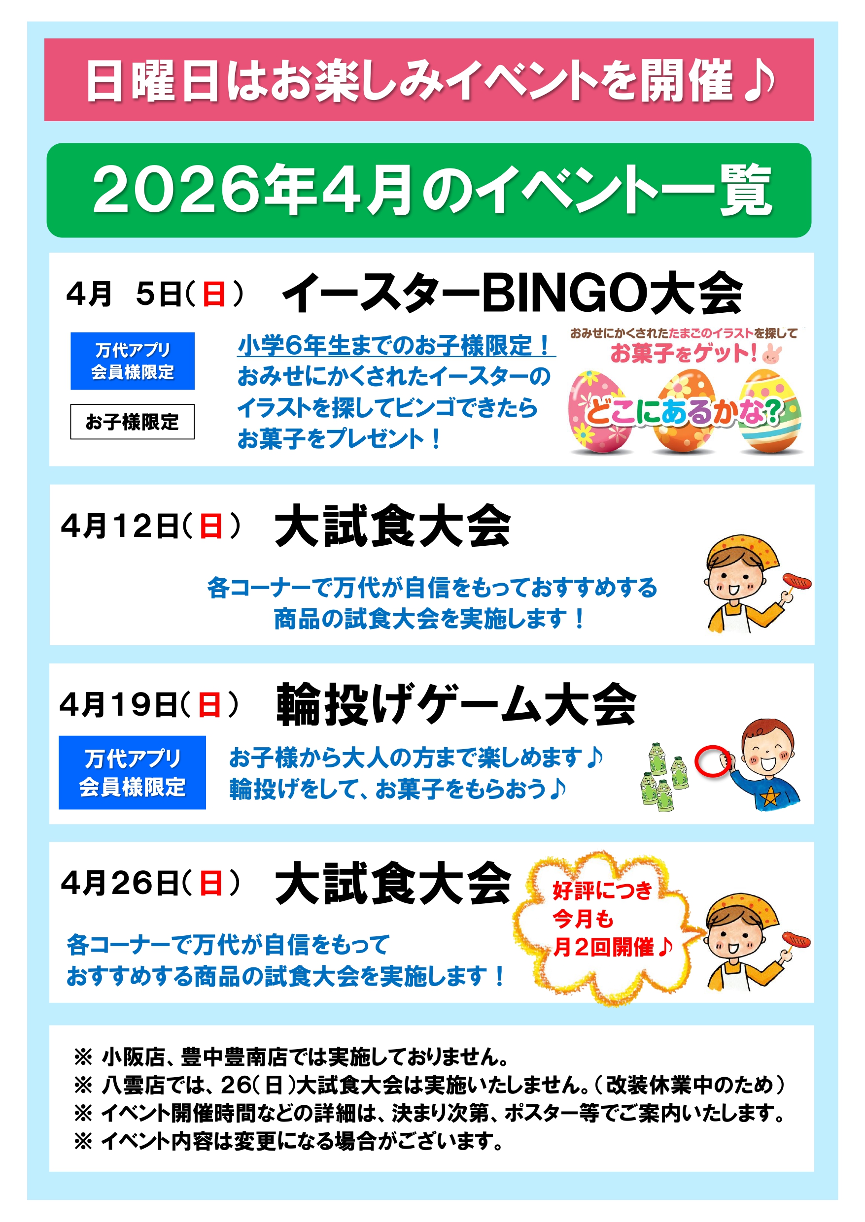 ※各イベントの詳細につきましては、店内のポスターをご確認ください。