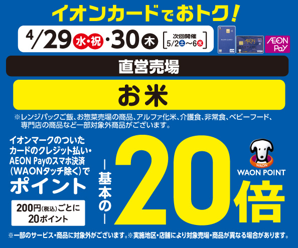 お米の各売場でWAON POINT基本の20倍!