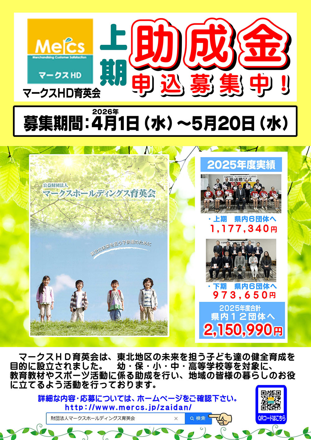 公益財団法人マークスホールディングス育英会は、東北地区の将来を担う子供達の健全育成を目的に設立されました。