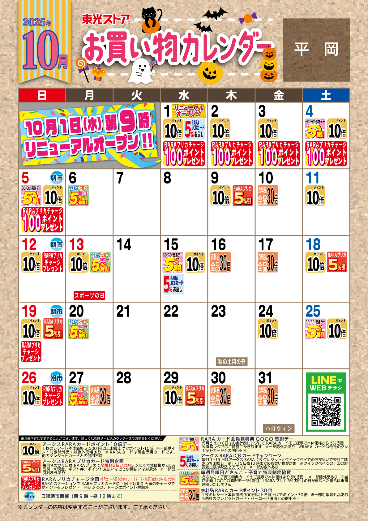 10月お買物カレンダー