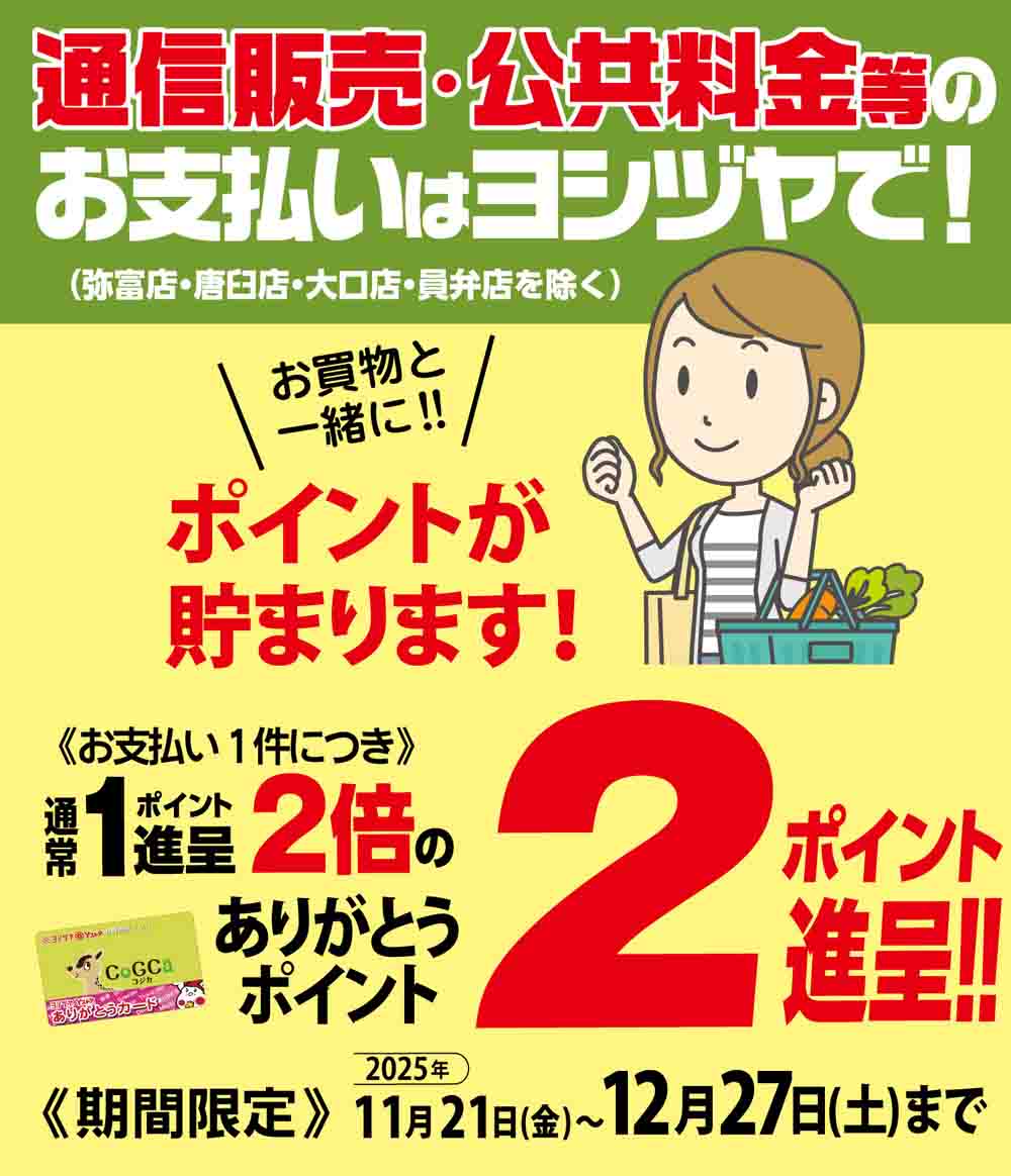 通信販売・公共料金等のお支払いはヨシヅヤで!