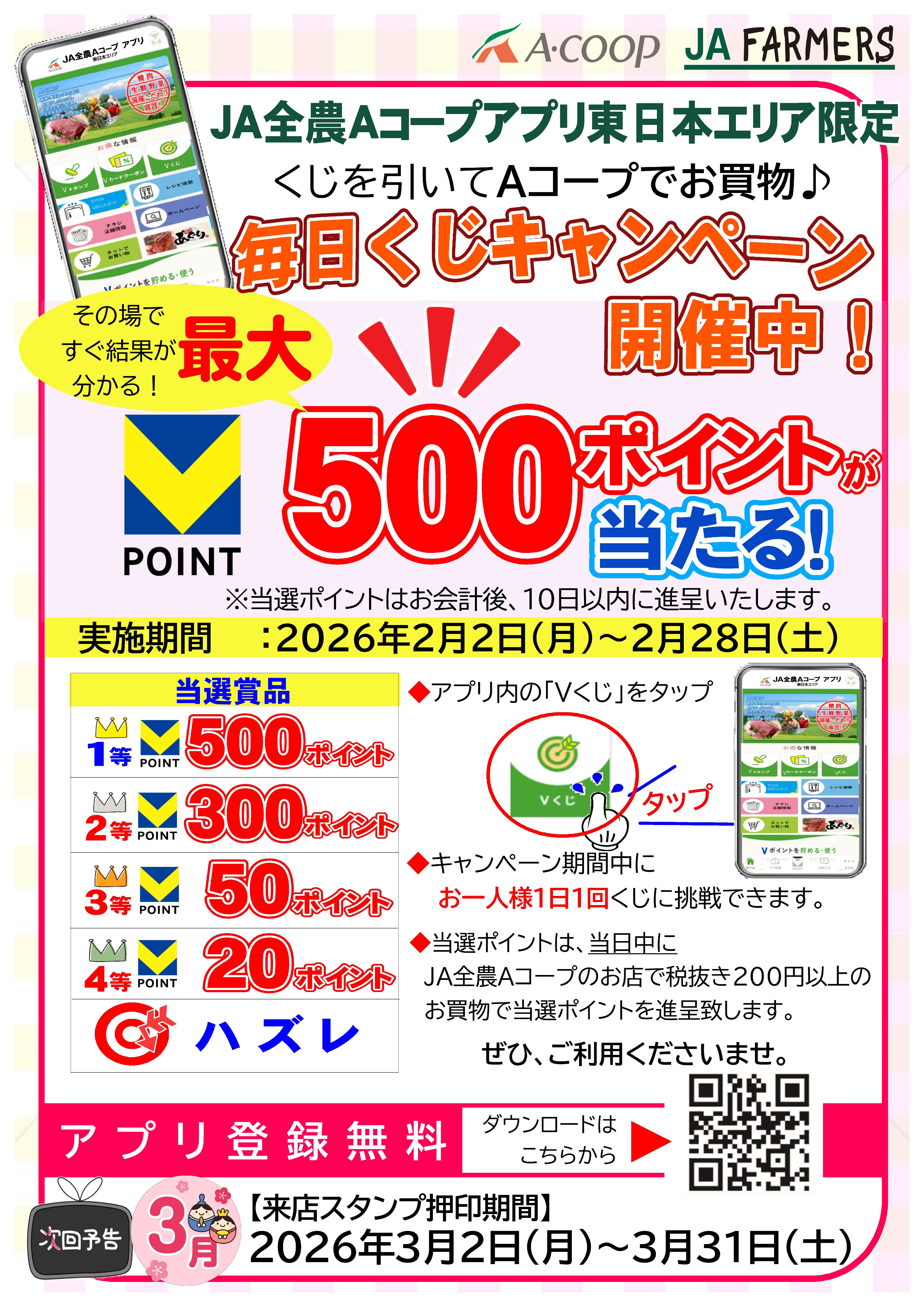 ◆JA全農Aコープアプリ東日本エリア限定!毎日Vくじキャンペーン!◆