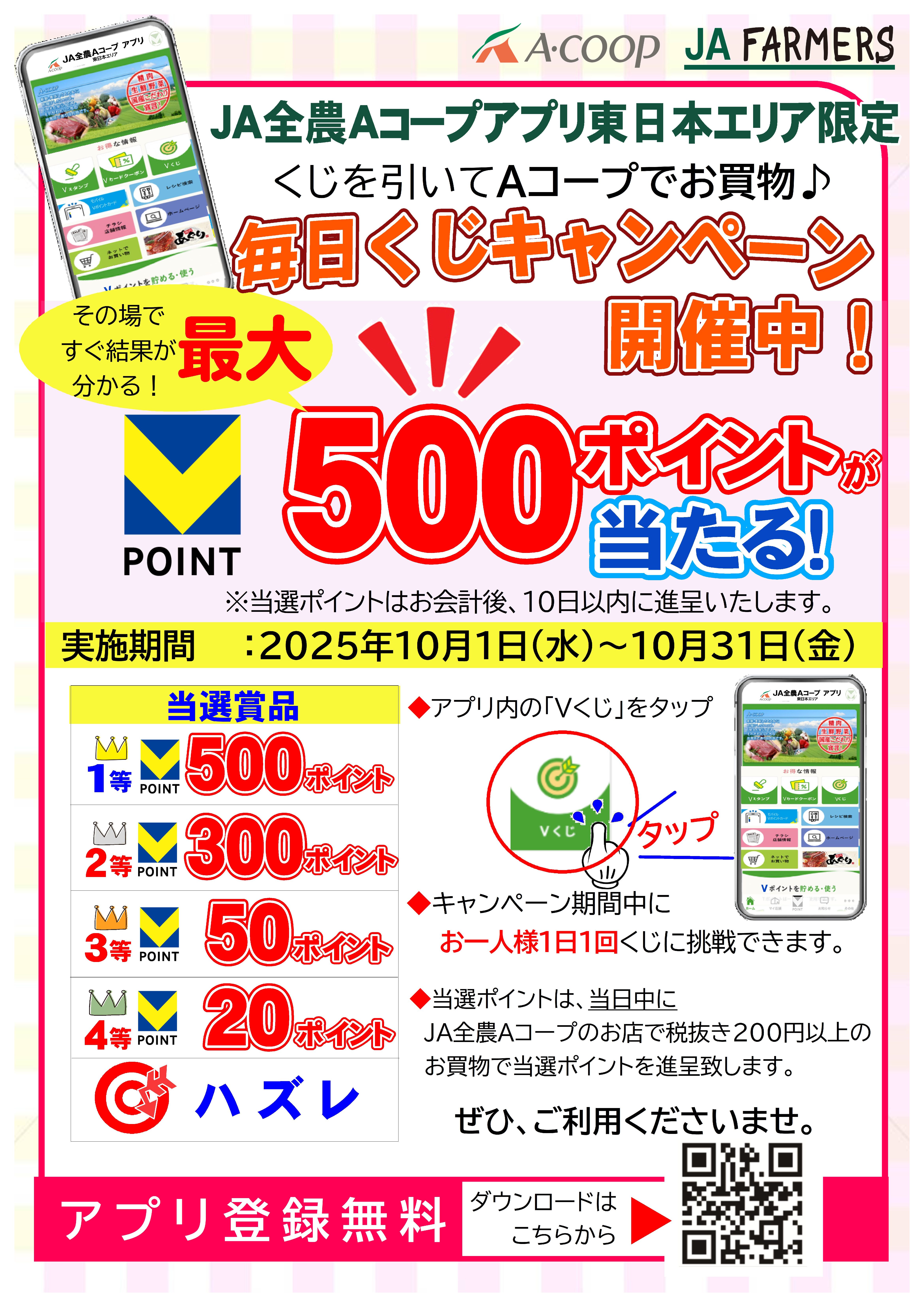 ◆JA全農Aコープアプリ東日本エリア限定!毎日Vくじキャンペーン!◆