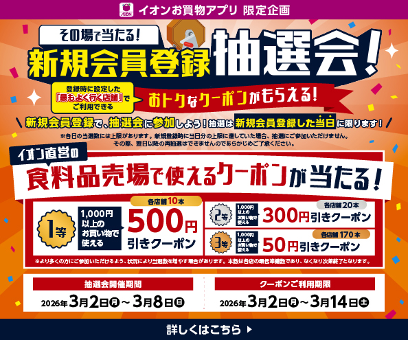 【イオンお買物アプリ】新規会員登録抽選会!