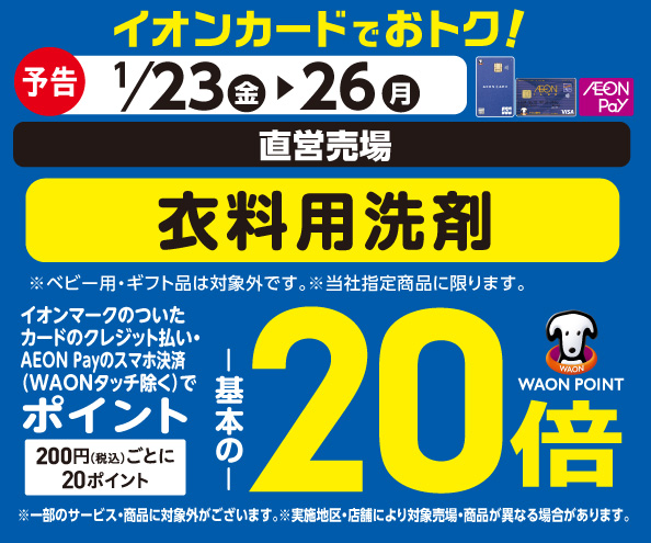 【予告】衣料用洗剤の各売場でWAON POINT基本の20倍!