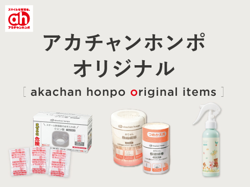 アカチャンホンポには、赤ちゃん・ママ・パパへのやさしさと思いやりをギュッと詰め込んだオリジナルアイテムがたくさんあります。ぜひチェックしてみてくださいね。