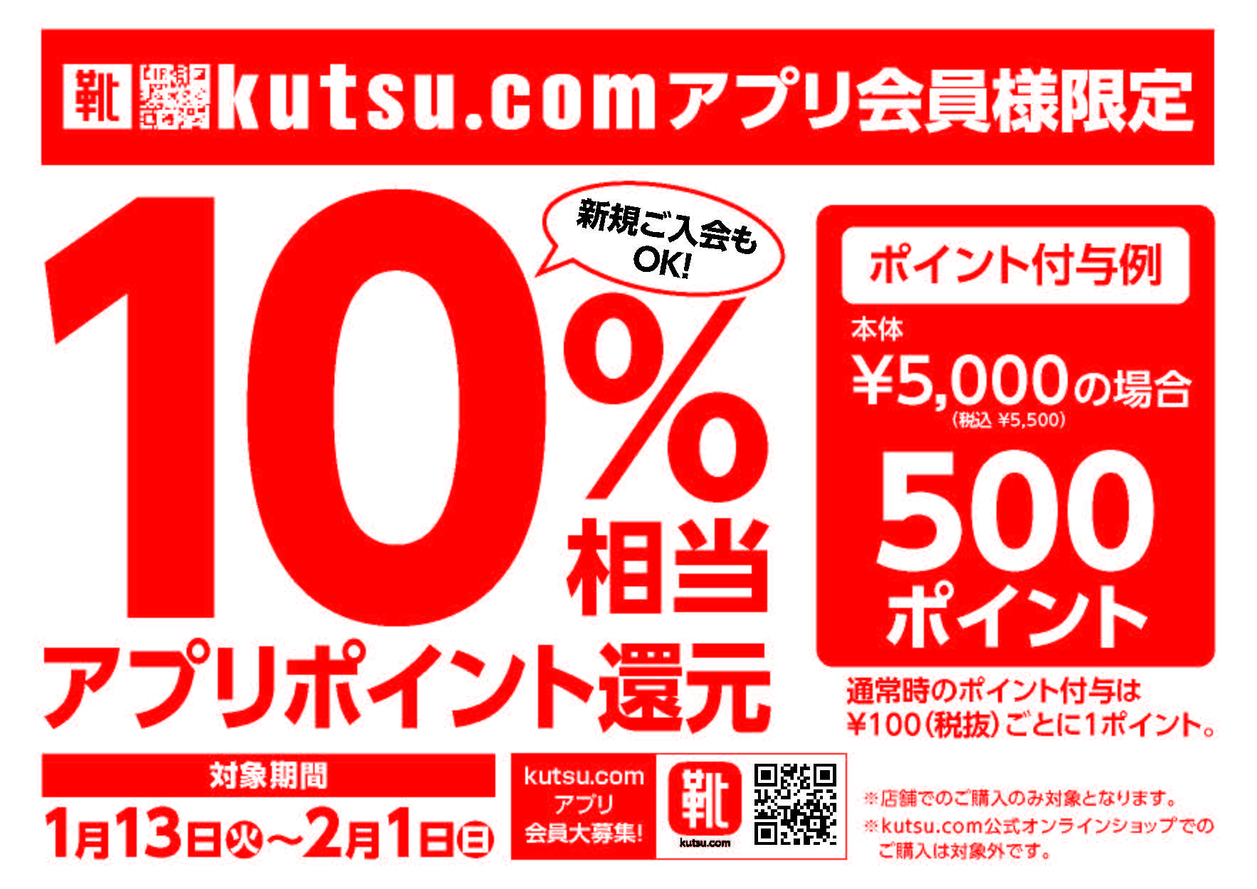 【kutsu.com】アプリ10%ポイント還元セール