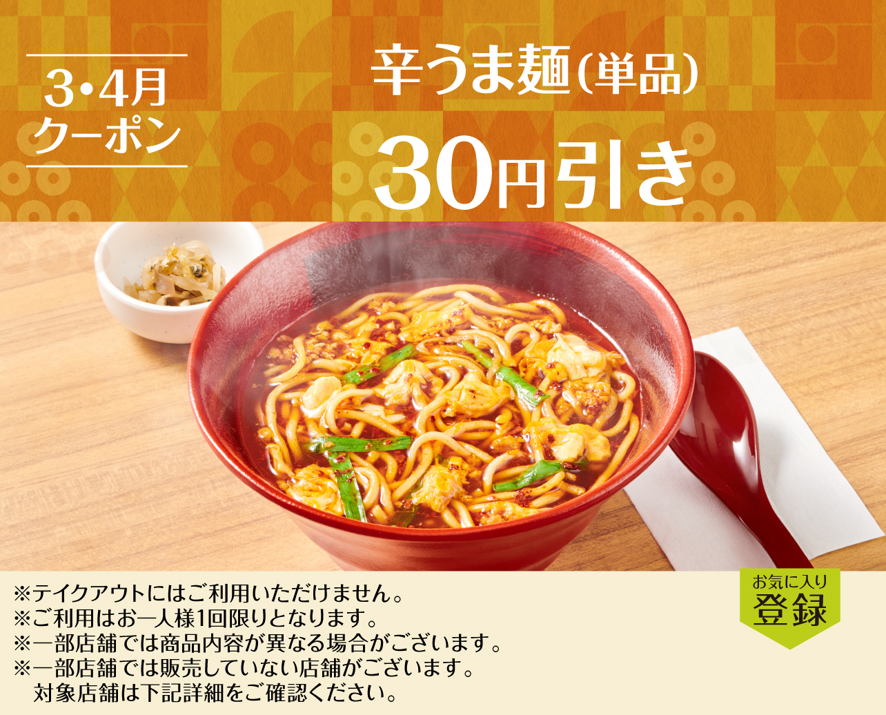 辛うま麺(単品)30円引きクーポン