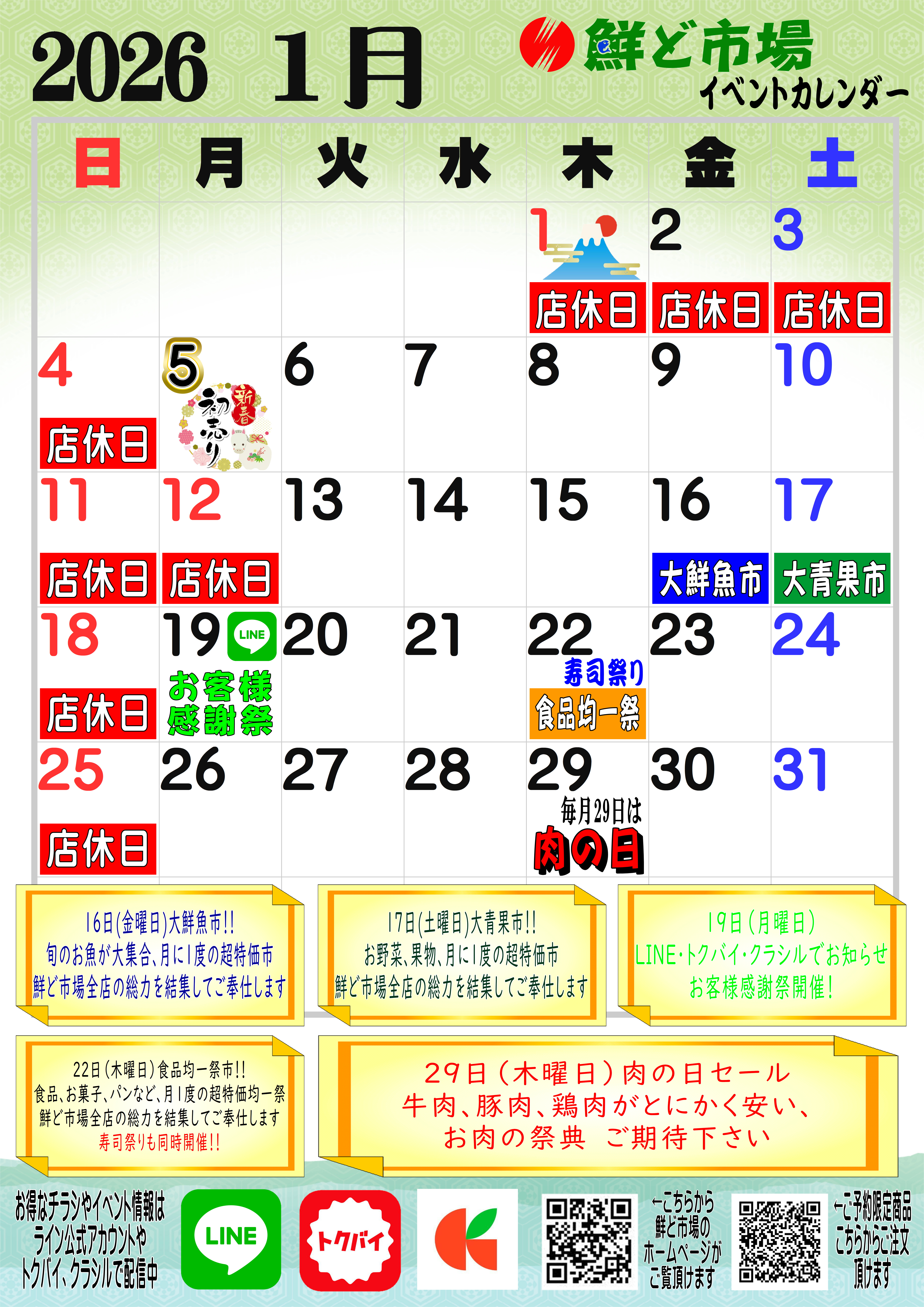 1月営業カレンダー