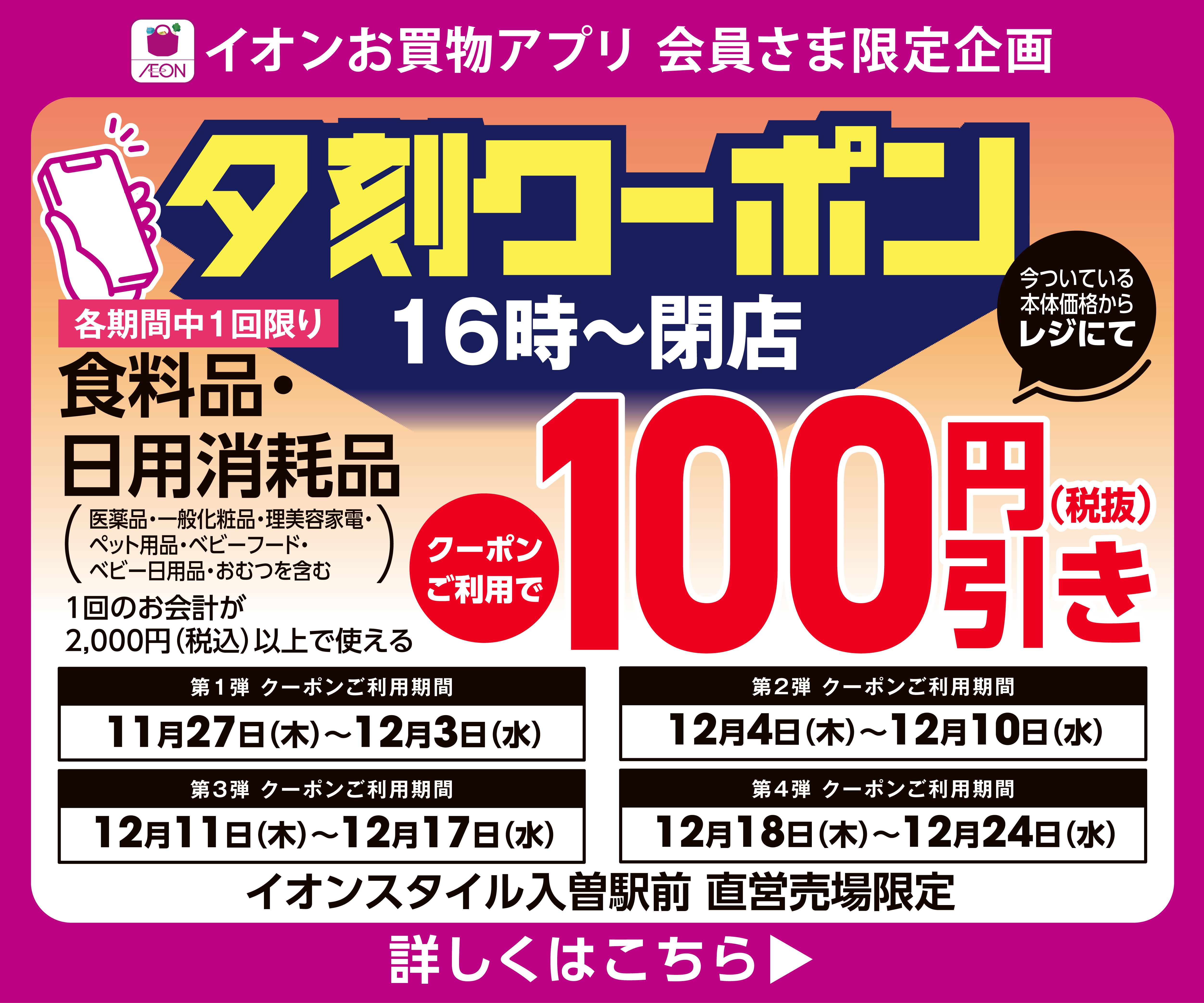 【イオンスタイル入曽駅前限定】夕刻クーポン配信!