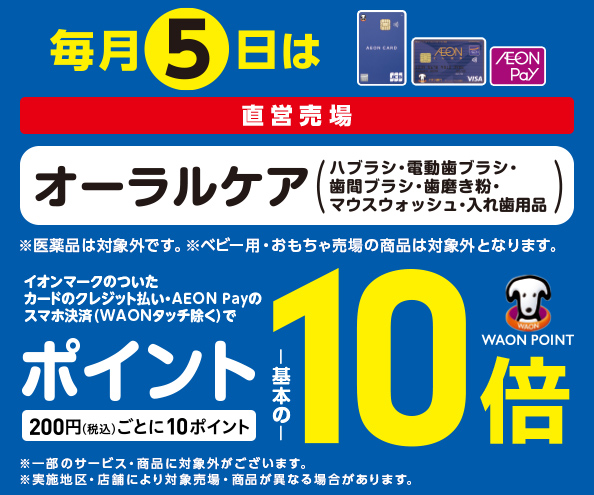 毎月5日はオーラルケアの各売場でWAON POINT基本の10倍!