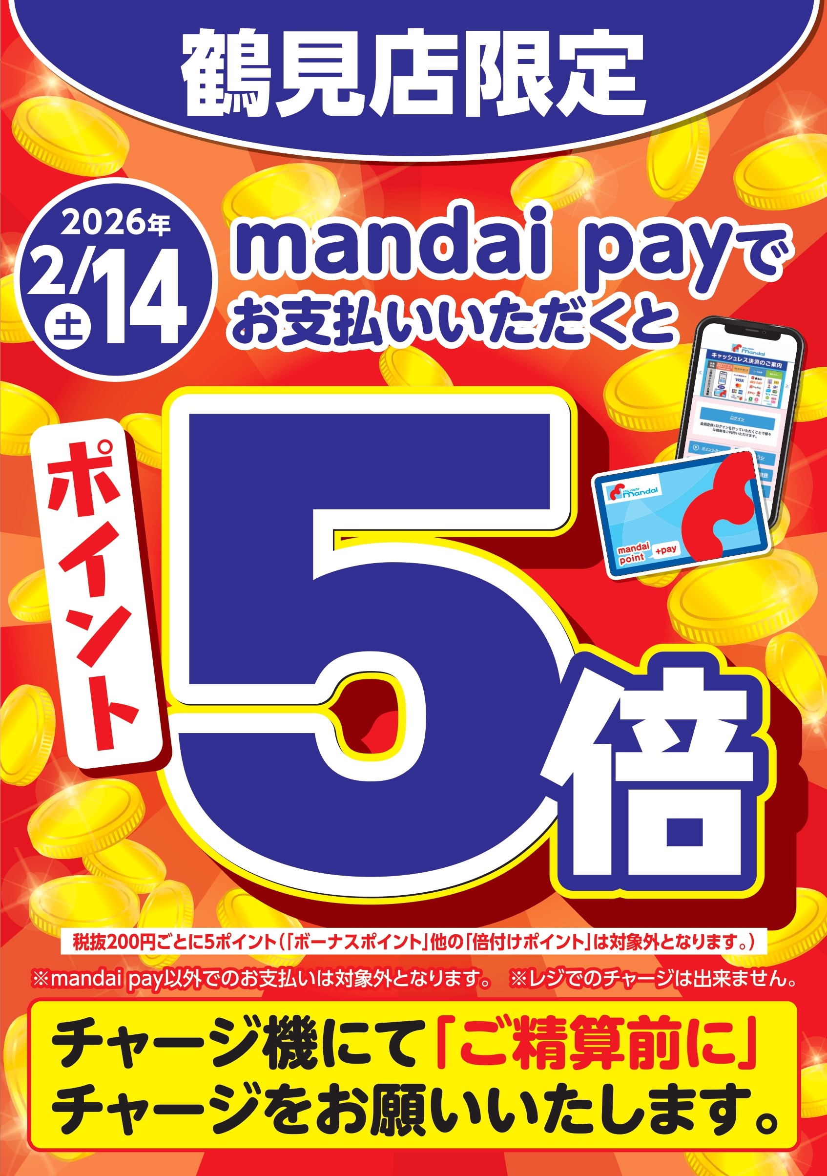 2月14日(土)は、日頃のご愛顧に感謝を込めて... 特別企画!「mandai pay」でお支払いいただくとポイント5倍!!!(※通常土曜日はポイント3倍)是非この機会をお見逃しなく!