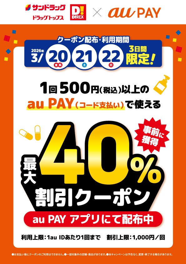 3月20・21・22日auPAY割引クーポン配布キャンペーン