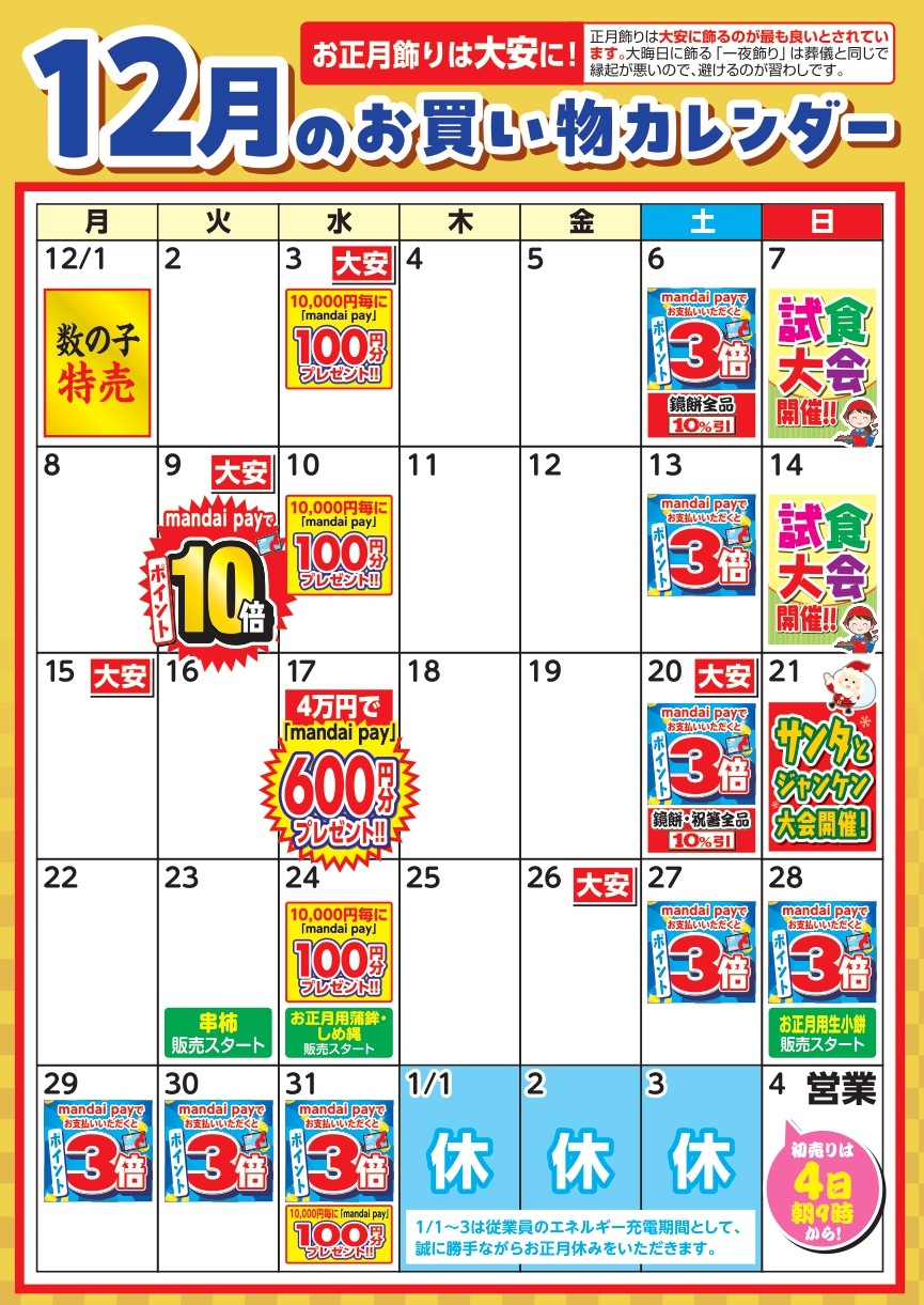 12月 お買い物カレンダー